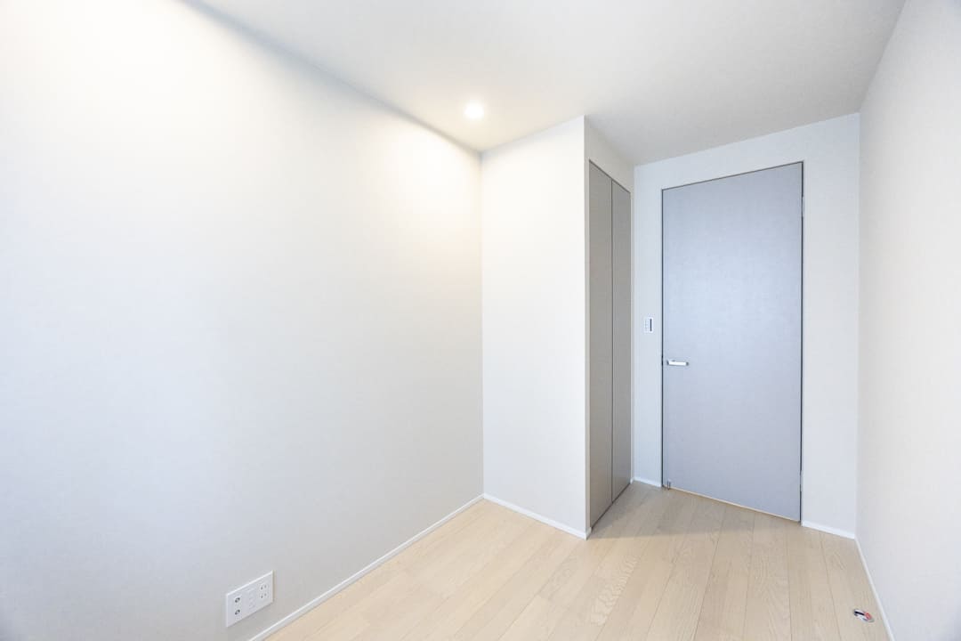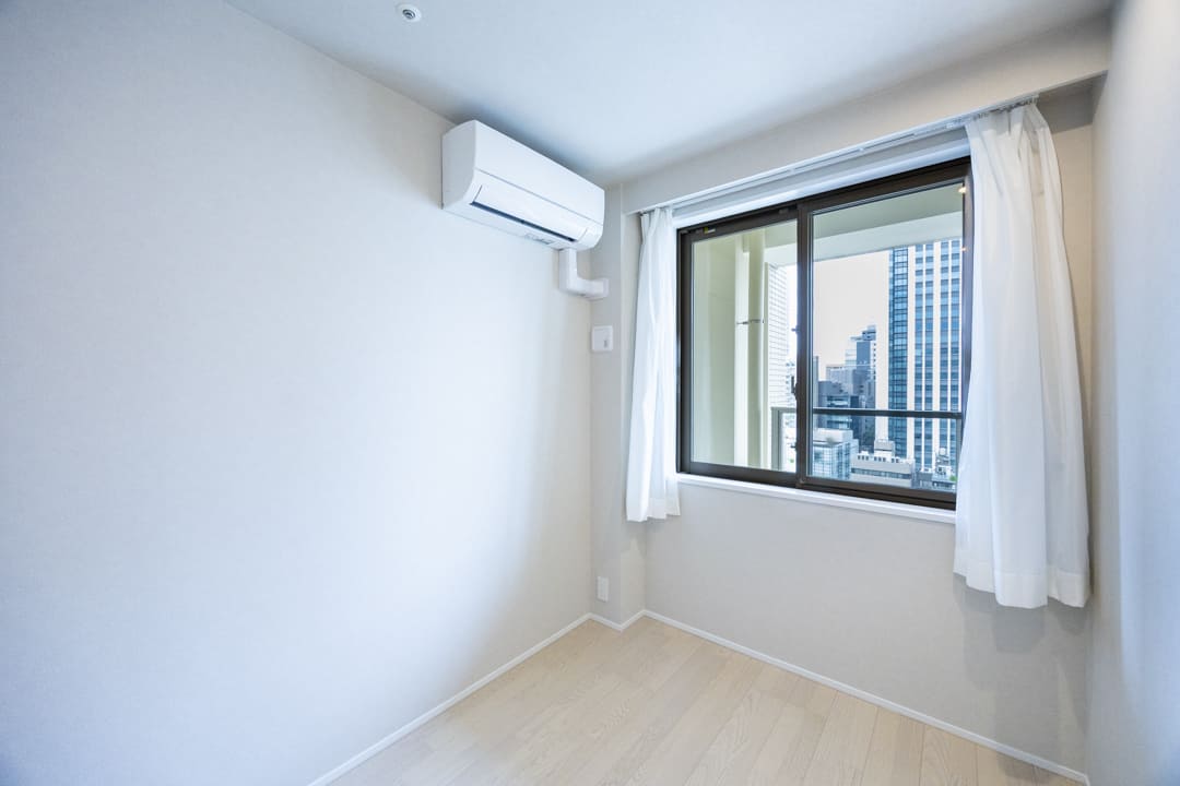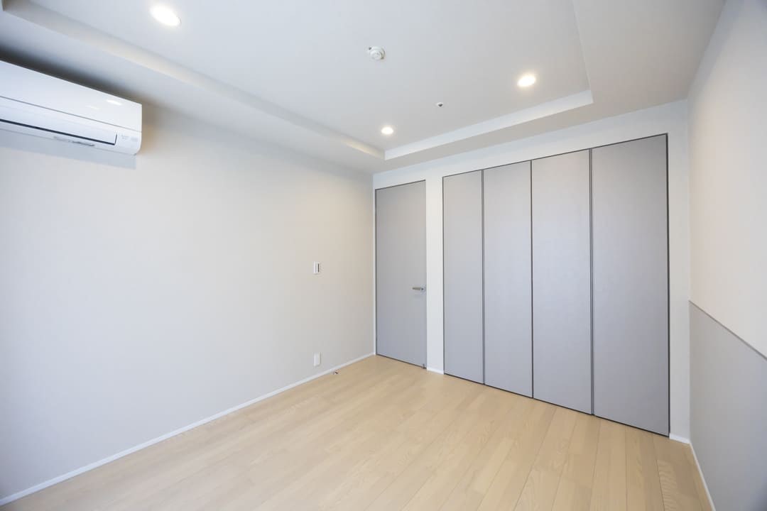 約4.3帖の洋室2。窓とクローゼットを備え、使い勝手の良い一室です。エアコンも設置されており、快適にお過ごしいただけます。寝室としてはもちろん、ワークスペースや趣味の部屋など、ライフスタイルに寄り添いながら柔軟に活用できる空間です。