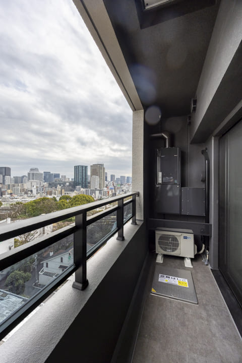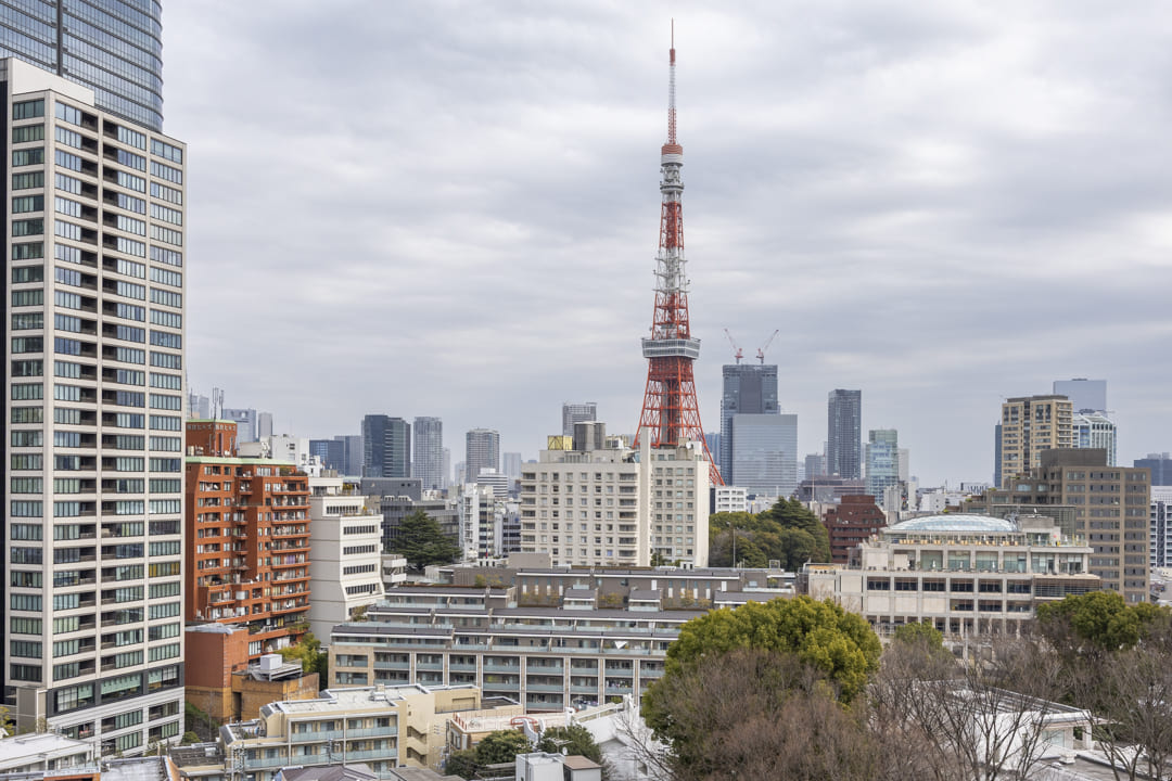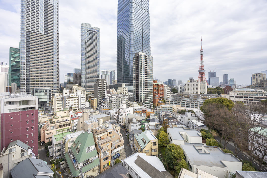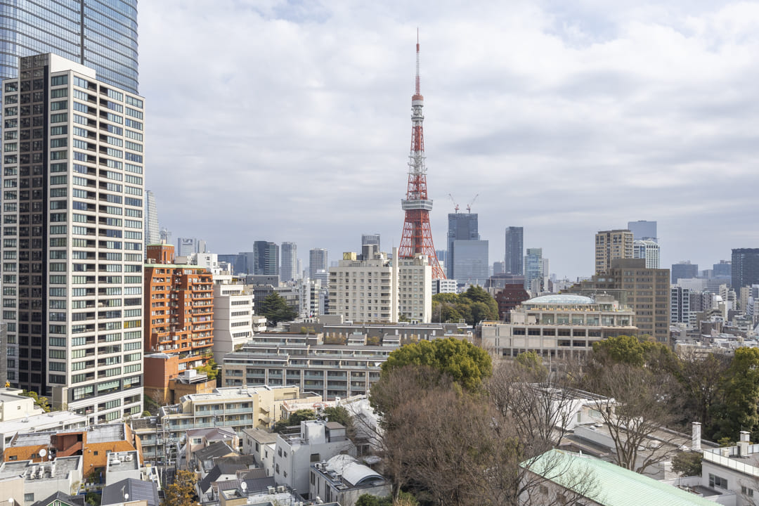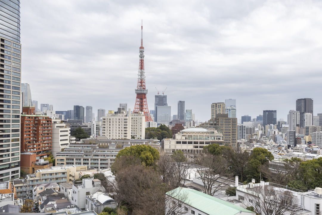 寝室に面するバルコニー。5.24㎡とコンパクトながら、視界が大きく開け、東京タワーを望む贅沢な眺めが広がります。都心の高層ビル群と落ち着いた街並みを一望でき、都市に暮らす魅力を日常の風景としてお楽しみいただけます。東向きのため朝日が心地よく差し込み、爽やかな目覚めのひとときや、朝のリフレッシュタイムにもおすすめのスペースです。