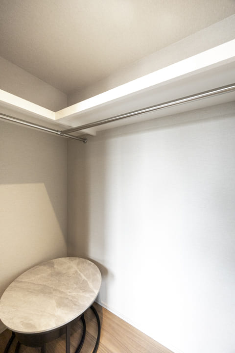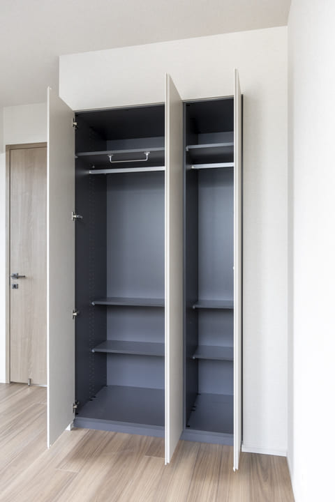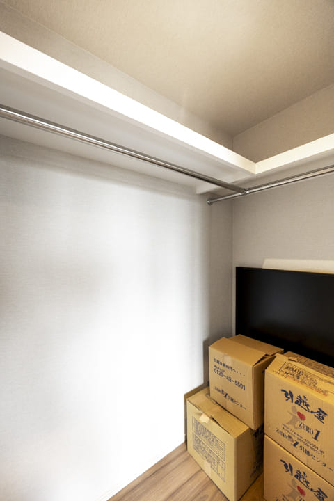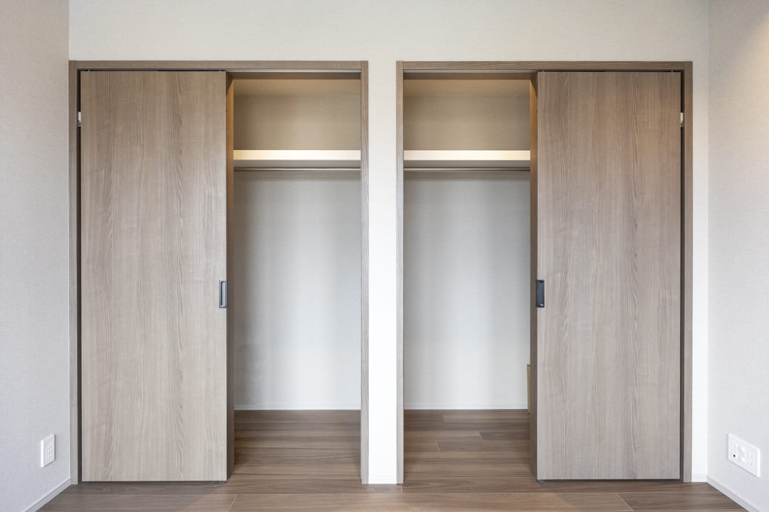 WIC(ウォークインクローゼット)が2つ並び、収納性の高さも魅力的。衣類はもちろん、トランクケースやゴルフバッグといった大きな荷物も収納でき、居室空間を広々と使うことができます。開閉時にスペースを取らない引き戸が採用されているのもポイントです。