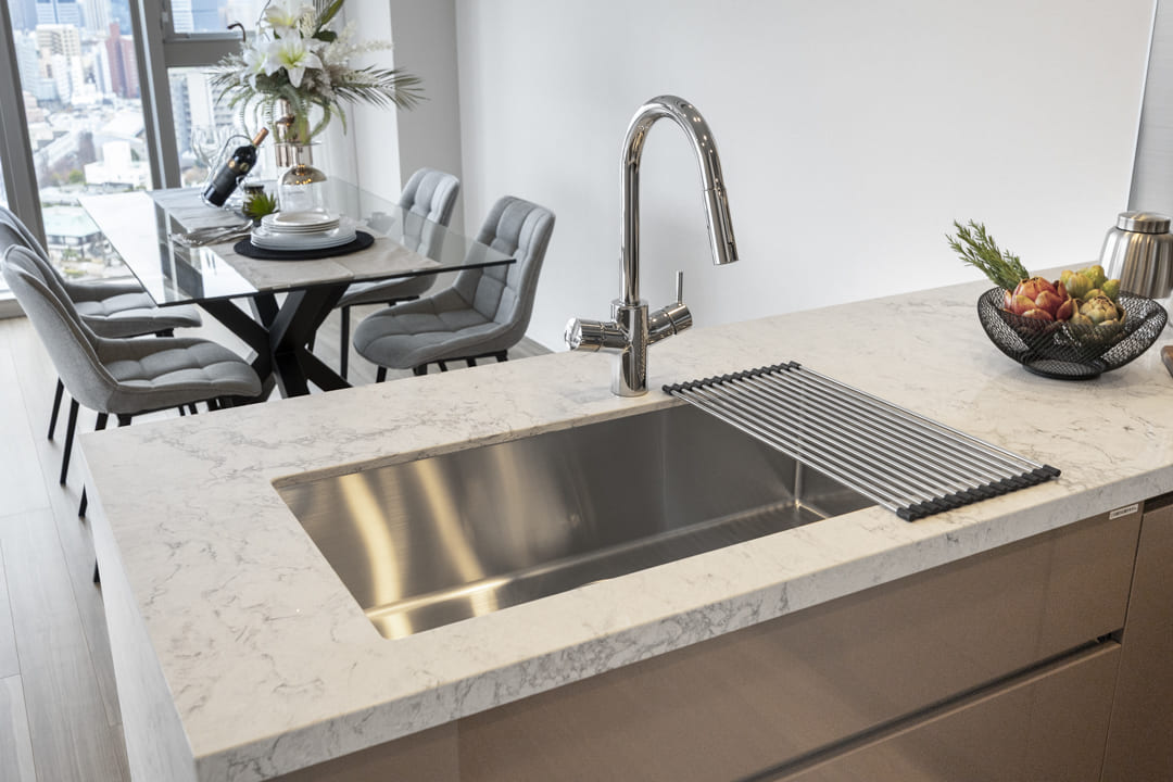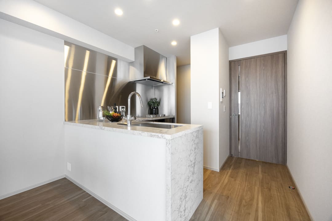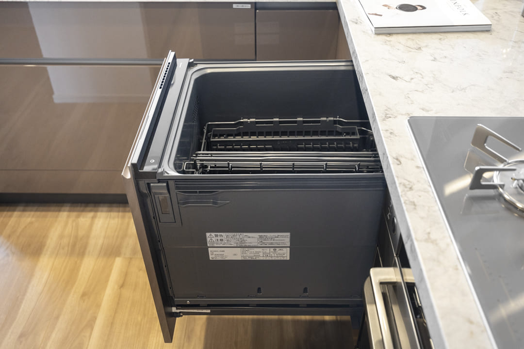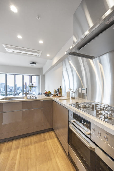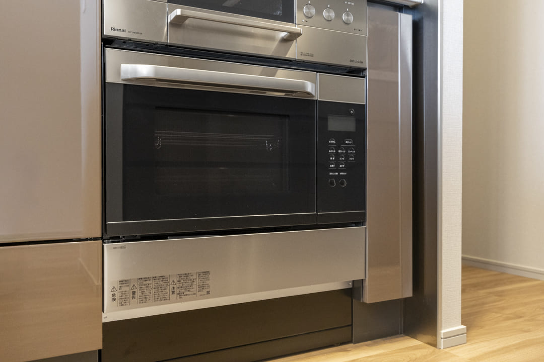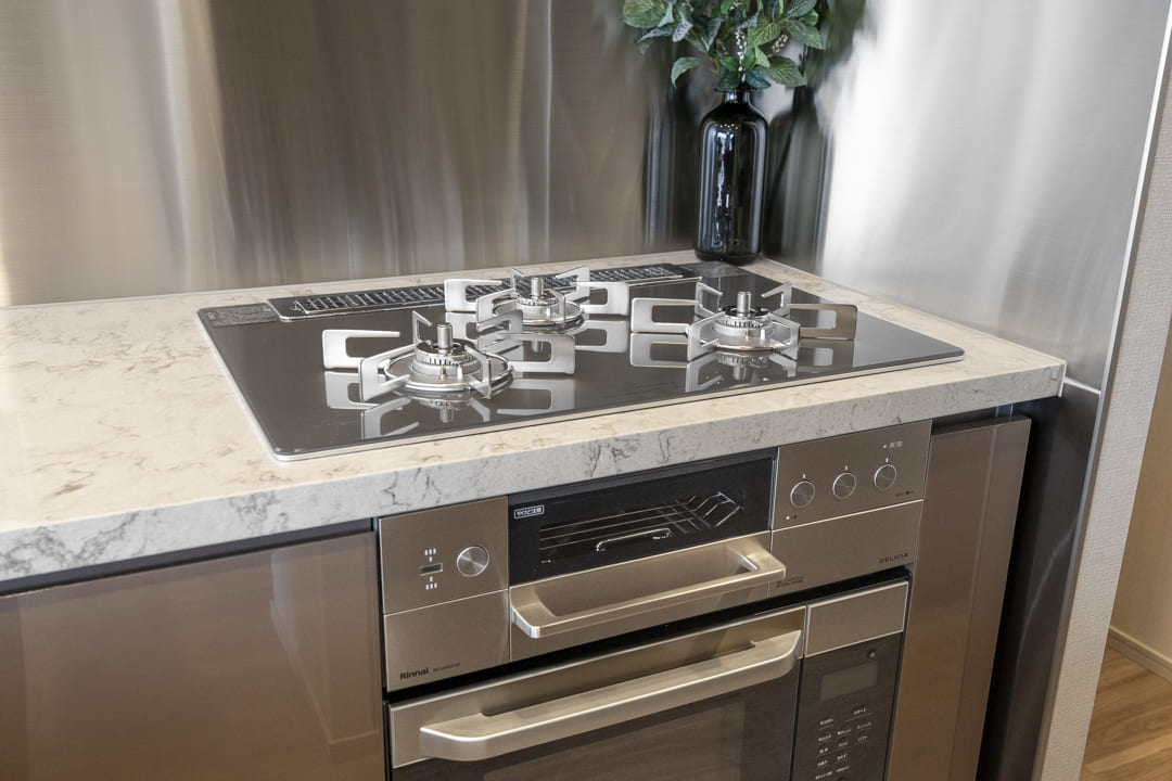3口コンロ、グリル、ディスポーザー、オーブン、食洗機付きと設備面も充実しています。シンクも広々としているので野菜などが洗いやすそうですよ。