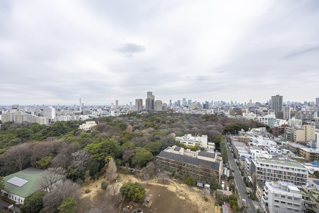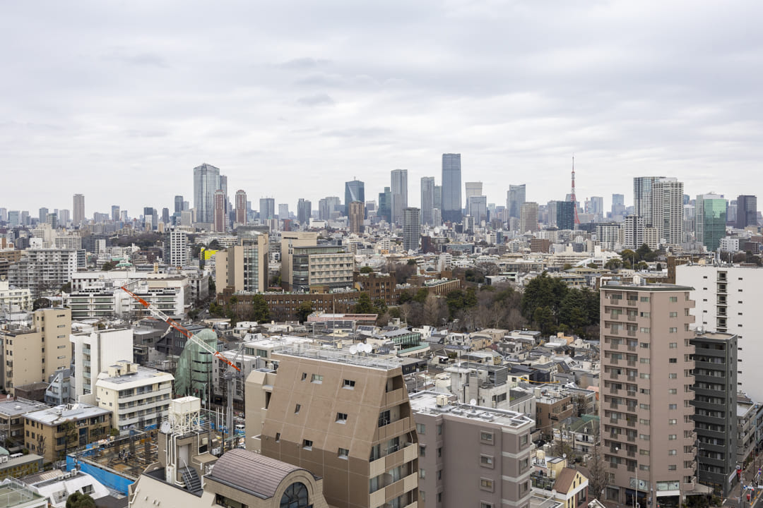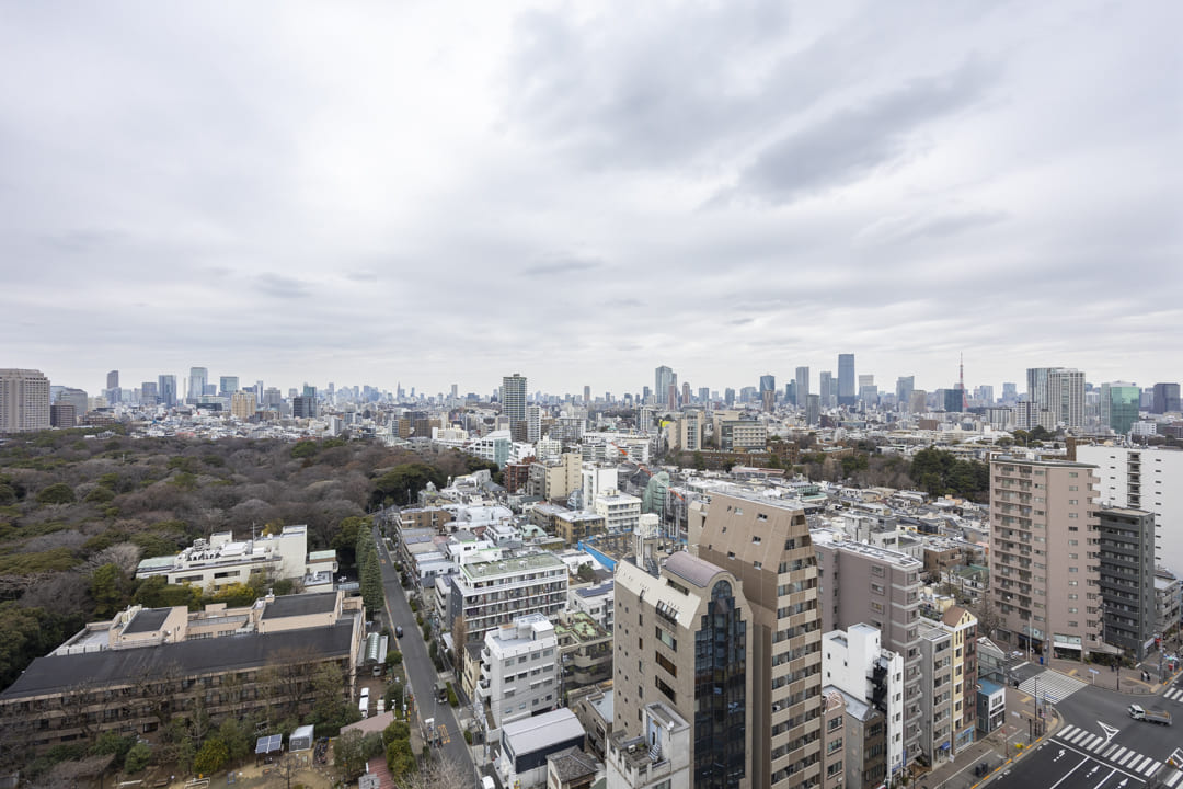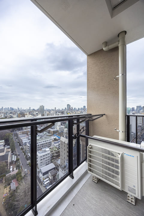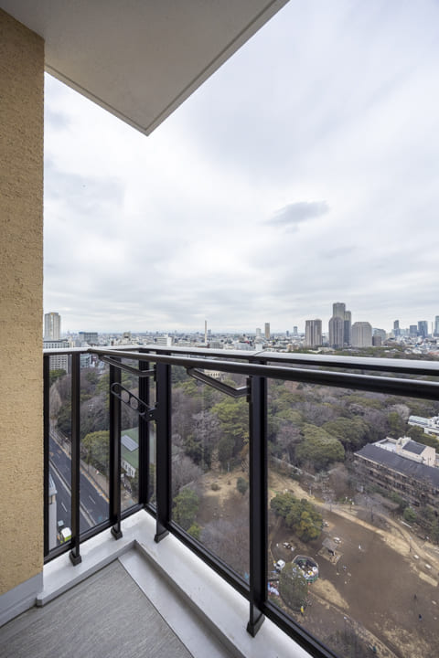 北西向きで約3.31㎡のバルコニーです。18階部分ということもあり、目の前には空と街を一望するパノラマビューが広がっています。自然教育園の緑と東京タワーのダイナミックさを感じます。“都会と自然のコントラスト”を日常に取り込めるのは大きな魅力です。