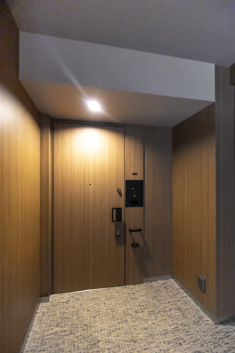 照明には人感センサーが付いているので、帰宅時に両手が塞がっていても安心です。消し忘れも防止できて節電にもなります。