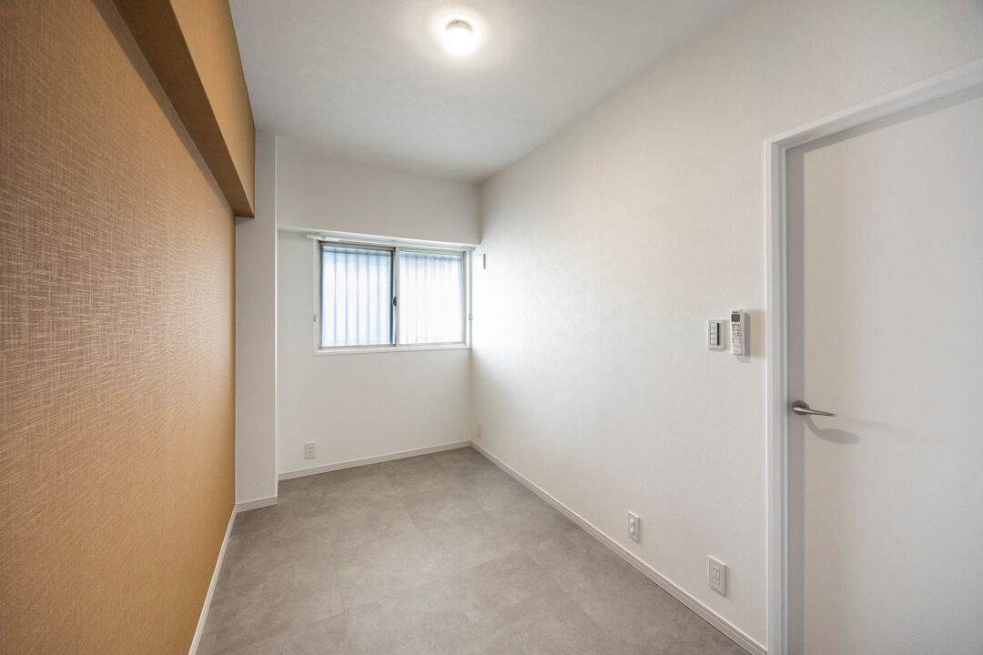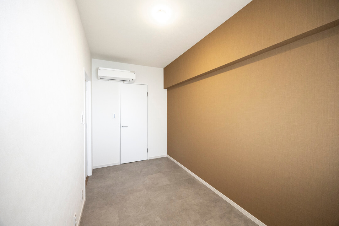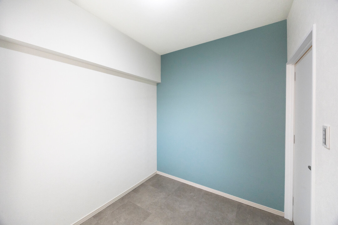 約3.7帖の洋室。水色のアクセントクロスがさわやかな印象のお部屋。ワークスペースや趣味部屋などにも使いやすい空間です。