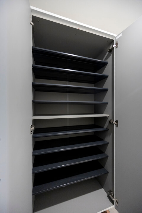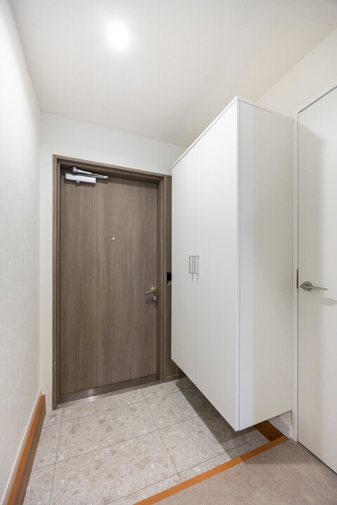 玄関には2枚扉のシューズボックスを完備。靴がたっぷり収納できます。また、玄関照明は自動センサーへの切り替えが可能。帰宅時に明るい空間で出迎えてくれます。電気の消し忘れも防げますね。