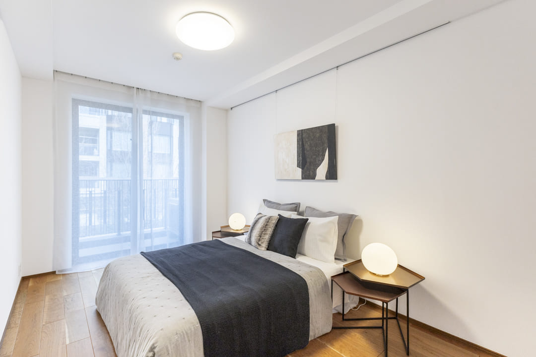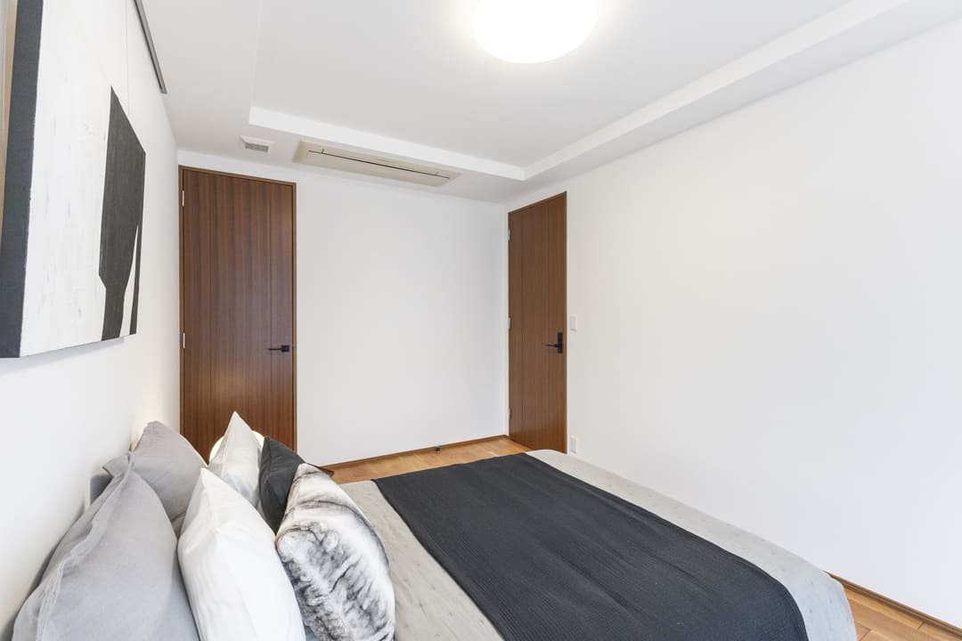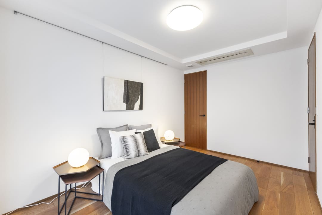 約8.0帖の主寝室。北向きのバルコニーに面し、やわらかな光が届く空間です。ゆったりと寛ぎの時間を過ごせそうですね。ピクチャーレールを活用し、自分好みのお部屋づくりを楽しめるのもポイントです。