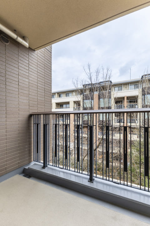 バルコニーは南北の2面に設置。住まい全体に明るい光と心地よい風を取り込みます。LDKに面した南向きバルコニーにはあたたかな陽光が降り注ぎ、開放感あふれるひとときを演出。お花の水やりや窓掃除に便利なスロップシンクも備えています。眼下には中庭の緑が広がり、日々の暮らしに穏やかな彩りを添えてくれます。