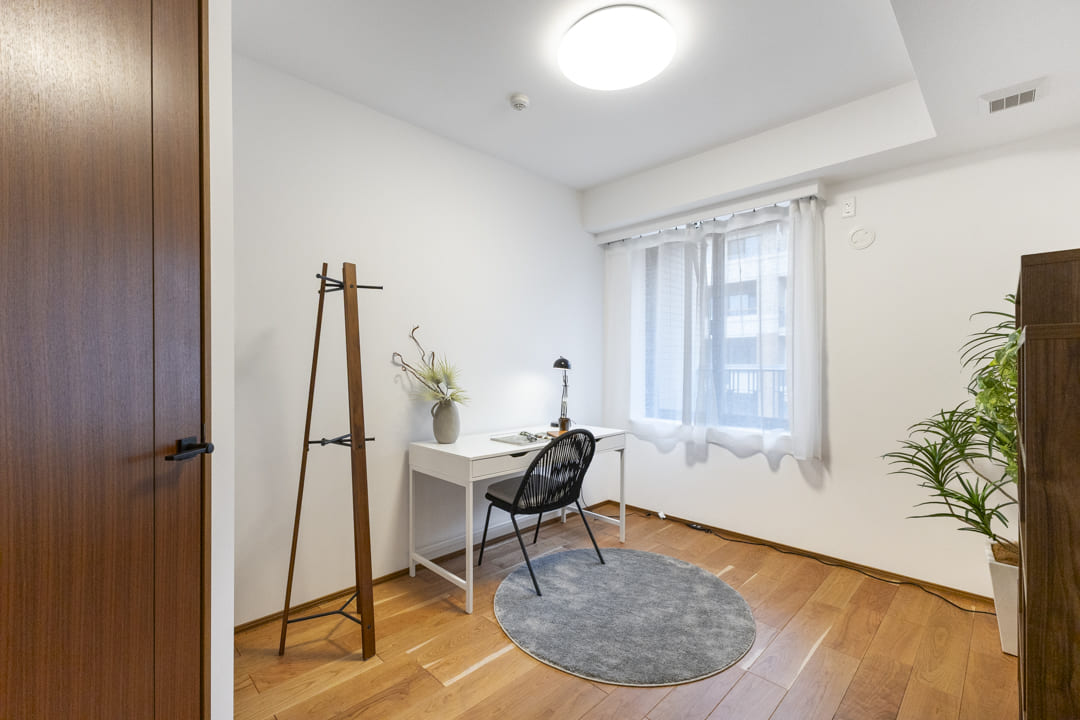 約6.7帖の寝室。サービススペースに面する窓と、約1.4帖のWIC(ウォークインクローゼット)を備えたお部屋です。使い勝手が良く、寝室としてはもちろん、ワークスペースや趣味部屋にも◎。家族構成やライフスタイルに柔軟に対応できる一室です。