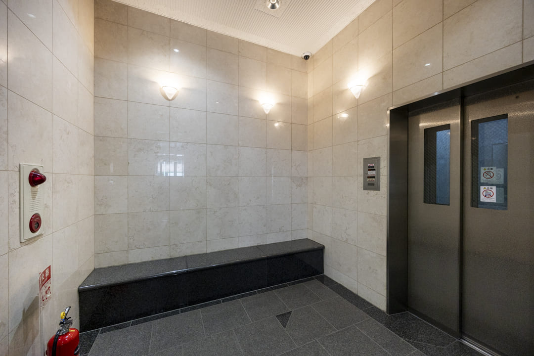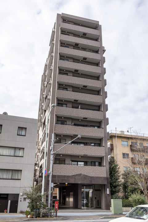 1997年(平成9年)2月に竣工した鉄骨鉄筋コンクリート造のマンション。地下1階付11階建、総戸数は33戸です。ブラウン系のタイル貼りで落ち着いた印象の外観です。モニター付オートロック完備でセキュリティ面は安心。共用部は内廊下設計になっているのでプライバシー面にも配慮されています。天候の影響も受けることがなくて助かりますね。さらに、不在時に重宝する宅配ボックスも設置されています。