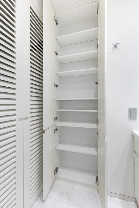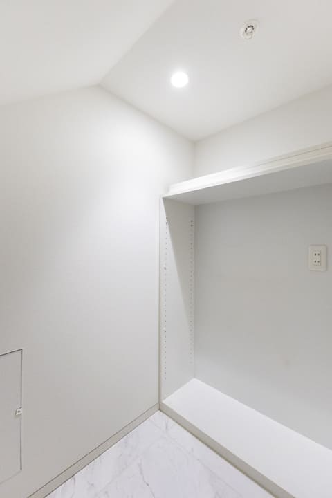約2.0帖のロフト収納や可動棚を備え、収納力も充実。生活感の出やすい日用品や季節物をすっきりと収めることができ、整った居住空間を保ちやすい設計です。