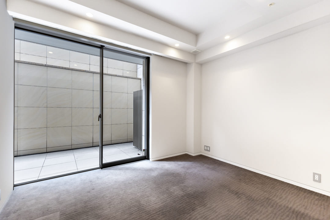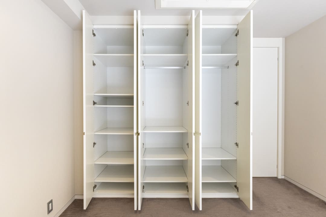 約7.5帖の寝室もテラスに面し、外へと視線が抜ける開放感のある空間です。壁一面に配されたクローゼットは収納力も豊富。ハンガーパイプや棚板の高さを調節でき、用途に応じてすっきりと整います。フロアは主寝室と同様にカーペット仕様。足元には床暖房を備え、やさしい温もりに包まれる快適な居室環境を実現しています。子ども部屋や書斎など、多彩な使い方に応える一室です。