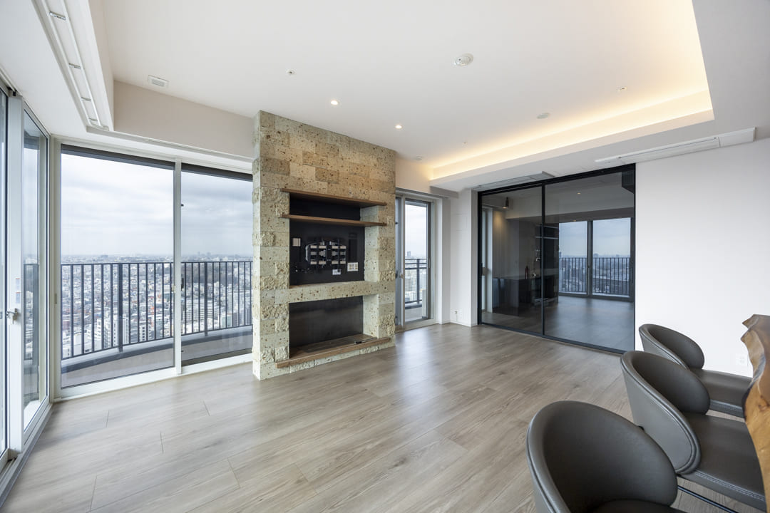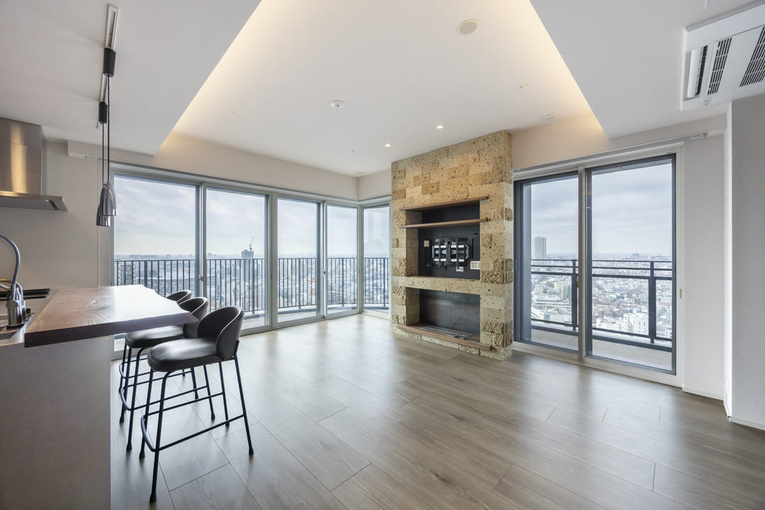 2023年に竣工した「プラウドタワー目黒MARC」。竹中工務店施工、地上32階建のタワーマンションです。24時間有人管理に加え、スカイラウンジやコンシェルジュサービスなど共用施設も充実しています。ご紹介するお部屋は26階部分、専有面積100㎡超の3LDK。富士山や東京湾、横浜港を望む壮大なパノラマビューが日常を彩ります。ウォールナットや大谷石など上質な素材を採用し、暖炉やロウリュ対応の本格サウナも備えた贅沢な住空間。「目黒」駅より徒歩9分の利便性と、都心を見晴らす開放感を兼ね備えた一邸です。