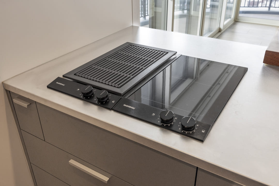 GAGGENAU製のIHクッキングヒーターやバーベキューグリル、オーブンレンジなど、ハイスペックな設備を搭載。IHはスイッチ操作で繊細な火力調整が可能で、フラットなトッププレートはお手入れも簡単です。同時調理にも対応し、日々のお料理を快適にサポートします。さらに、LIEBHERR製のワインセラーを備え、最適な温度を保ちながら複数のワインをストックできます。