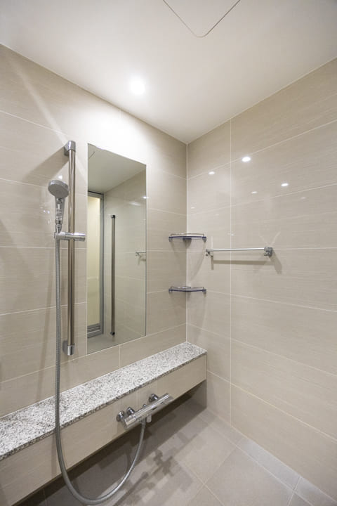 石調デザインで上質感の漂うバスルーム。浴室換気乾燥暖房機や追い焚き機能に加え、ミストサウナも搭載されていて、日々の疲れを心地よく癒せます。発汗によるリフレッシュや、ゆったりとしたボディケアタイムなど、暮らしに寄り添う快適なバスタイムをお楽しみいただけます。