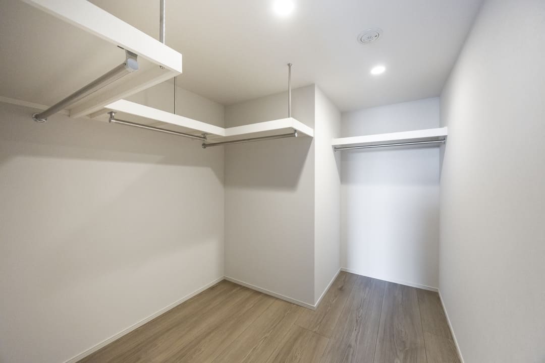大容量のWIC(ウォークインクローゼット)を備え、収納豊富。衣類はもちろん、トランクケースやゴルフバッグ、季節家電といった大きな荷物も収納でき、居室空間を有効活用できます。