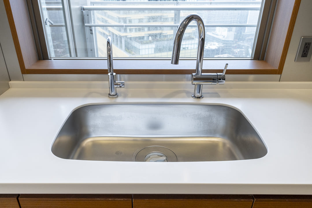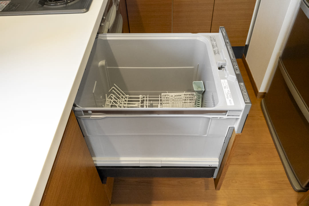 グリル付3口ガスコンロ・オーブン内蔵で同時調理が叶い、料理のレパートリーが増えそう。後片付けの時短が叶う食洗機も内蔵されています。さらに、シンクにはディスポーザーを搭載。料理後すぐに生ゴミを処理できるので、掃除の手間が軽減され、悪臭の原因を防いでくれます。