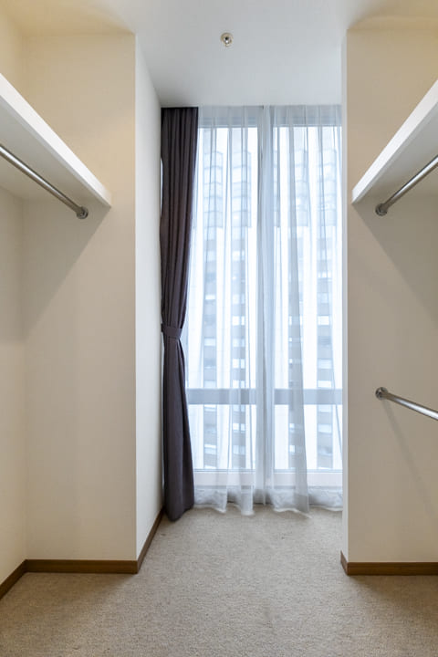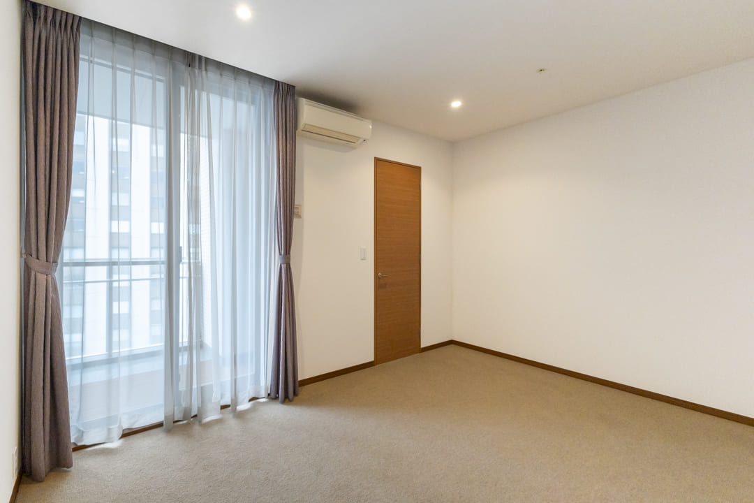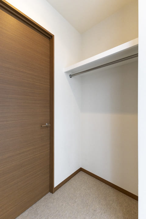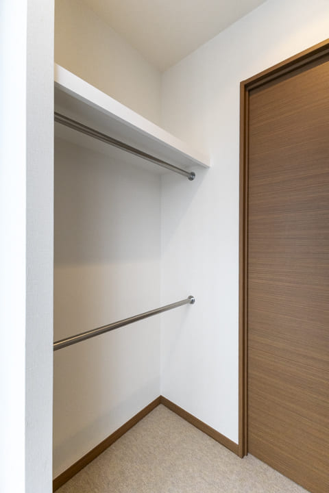 約8.1帖の洋室2。バルコニーに面し、奥行きと広がりを感じられる空間です。WIC(ウォークインクローゼット)を備え、収納性の高さも魅力。衣類はもちろん、トランクケースやゴルフバッグといった大きな荷物も収納でき、居室空間を有効活用できます。