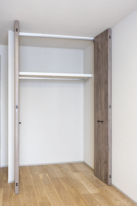 お隣に位置するのは、約6.3帖の洋室2。こちらも南向きで、あたたかな陽光が差し込みます。開口部の広いクローゼットを備え、衣類や荷物の出し入れもスムーズ。子ども部屋としてはもちろん、書斎や趣味の空間としてもご活用いただけます。