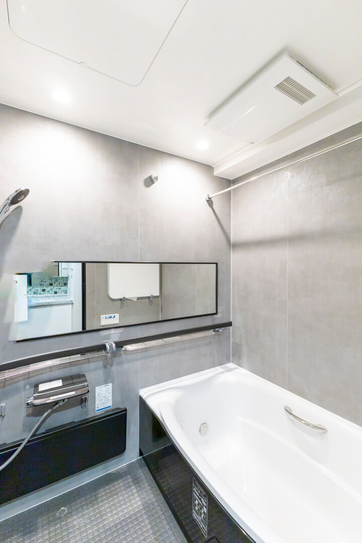 1317サイズのLIXIL製のバスルーム。追い炊き機能の他、乾燥・換気・暖房・涼風の4つの機能が備わっていて、一年中快適にバスタイムが楽しめます。ランドリーパイプも設置されていて、雨の日や冬場の洗濯にも困りません。