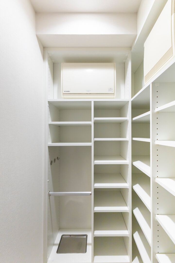 玄関にはSIC(シューズインクローゼット)を完備。靴がたっぷり収納でき、スポーツ用品なども収まりそうです。廊下にもコンパクトな物入が備わっています。