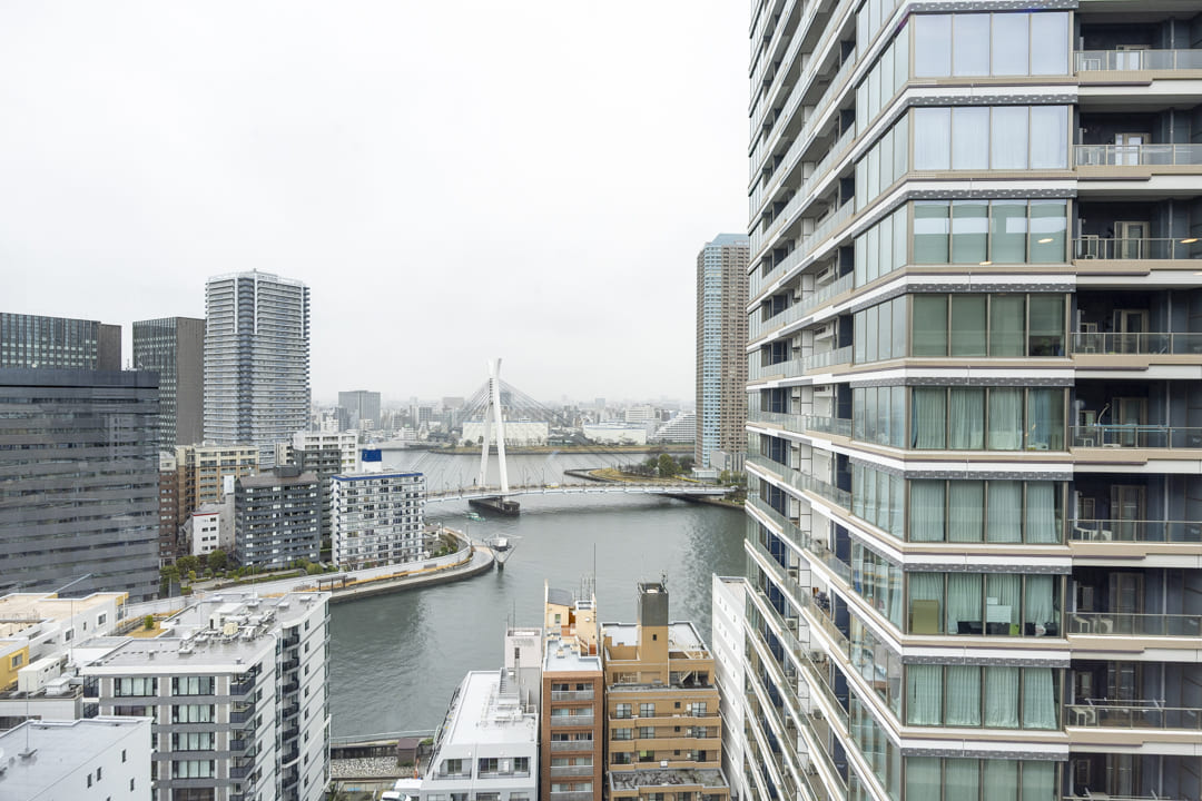 JR京葉線「八丁堀」駅より徒歩5分、鉄砲洲通り沿いに佇む「シティタワー銀座東」は、2019年(令和元年)竣工と築浅。セキュリティ面や共用施設が充実しており、暮らしがより豊かになりそうですよ。お部屋は19階部分の2LDK。窓からは隅田川が望め、時間帯や季節によって違った景色を楽しむことができます。また、細則はありますが、ペットとも一緒にお住まいいただけます。