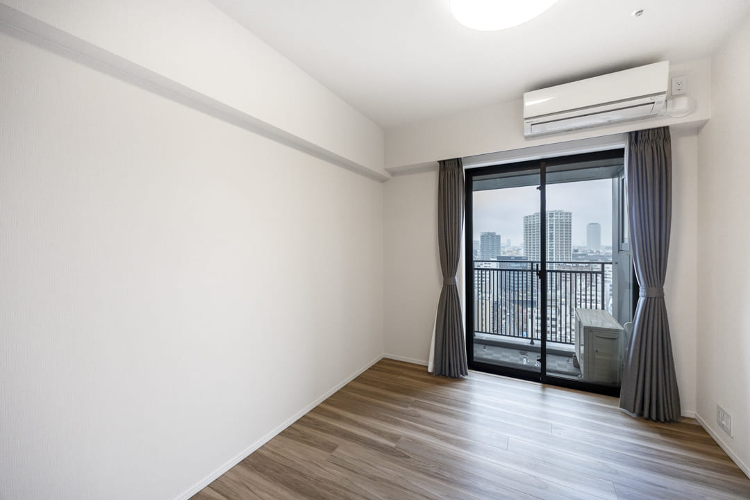 約5.0帖の洋室2は、収納や窓があって過ごしやすい空間。子ども部屋や書斎など、ライフスタイルに寄り添いながら、自在にお使いいただけます。また、窓からは北側のバルコニーにアクセスができます。空を感じる眺望で気分転換もしやすそうですよ。