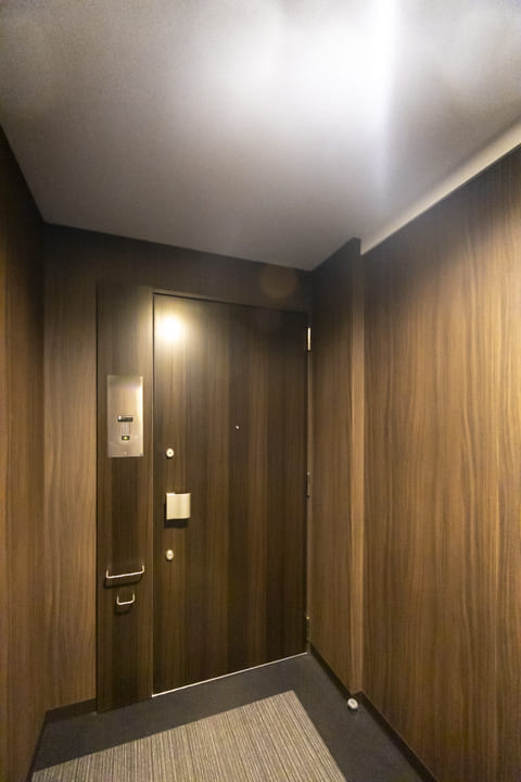 照明には人感センサーが付いているので、帰宅時に両手が塞がっていても安心です。消し忘れも防止できて節電にもなります。