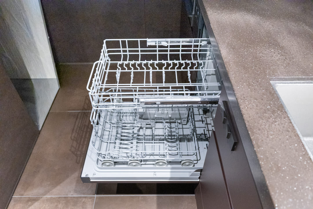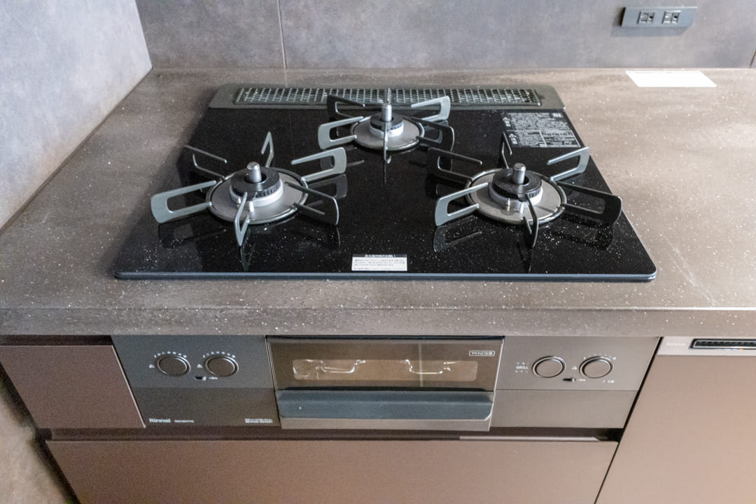 効率良く調理ができるグリル付3口ガスコンロを搭載。料理の幅も広がります。食洗機を内蔵しており、後片付けの負担を軽減しながら節水にも配慮。さらにカウンター下には蒸気排出ユニットを備え、キッチン家電を収納したまま炊飯や湯沸かしが可能です。空間をすっきりと保ちながら、快適にお使いいただけます。