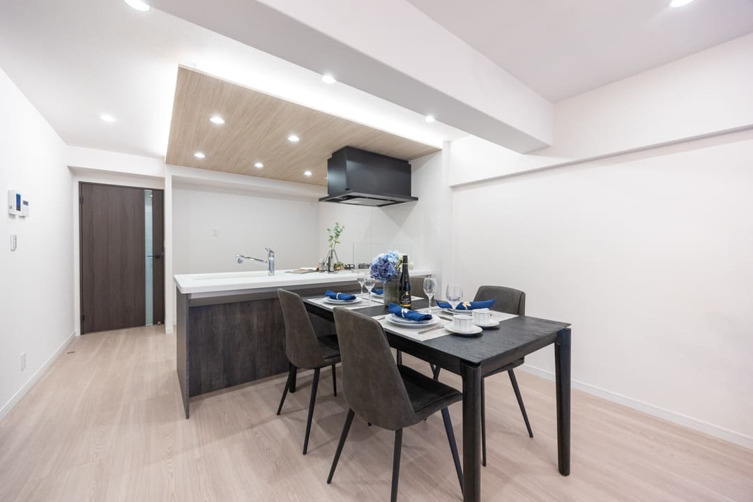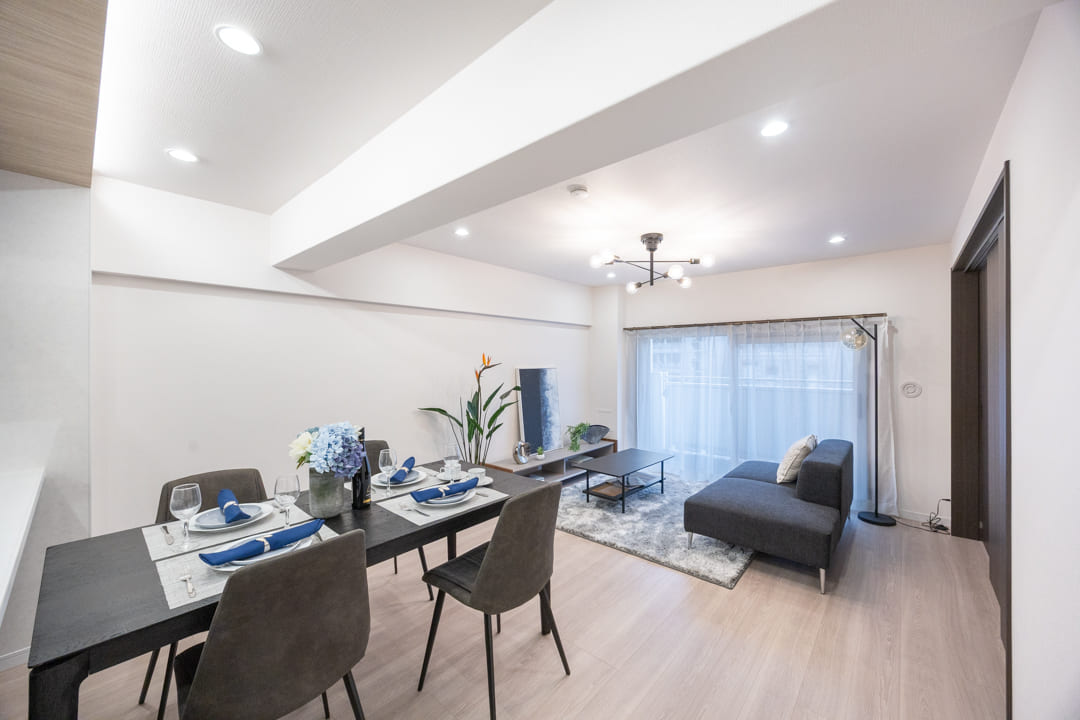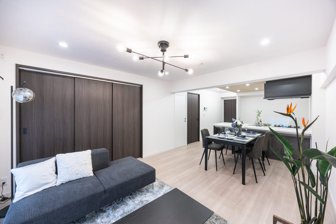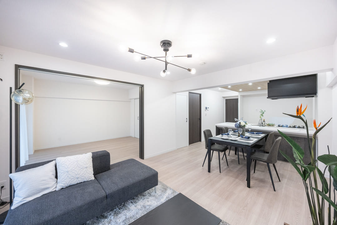 隣接する洋室1とは引き戸で仕切られていて、扉を開放すれば23帖超の一体空間として利用可能。普段は落ち着いたLDKとして、来客時や家族が集まるシーンでは開放感のある大空間として、ライフスタイルや用途に合わせた使い分けが叶います。