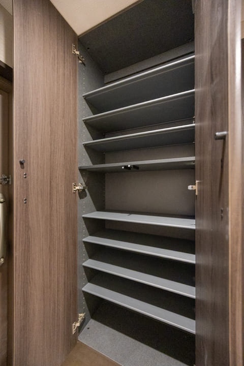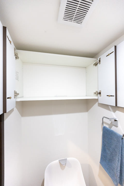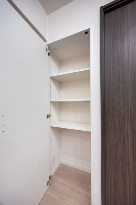 自由度の高い可動棚収納を完備。生活用品や書類、インテリア小物まで効率良く整理できます。扉付きのため、洗練された室内を美しく保てるのも魅力です。