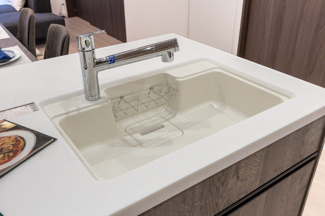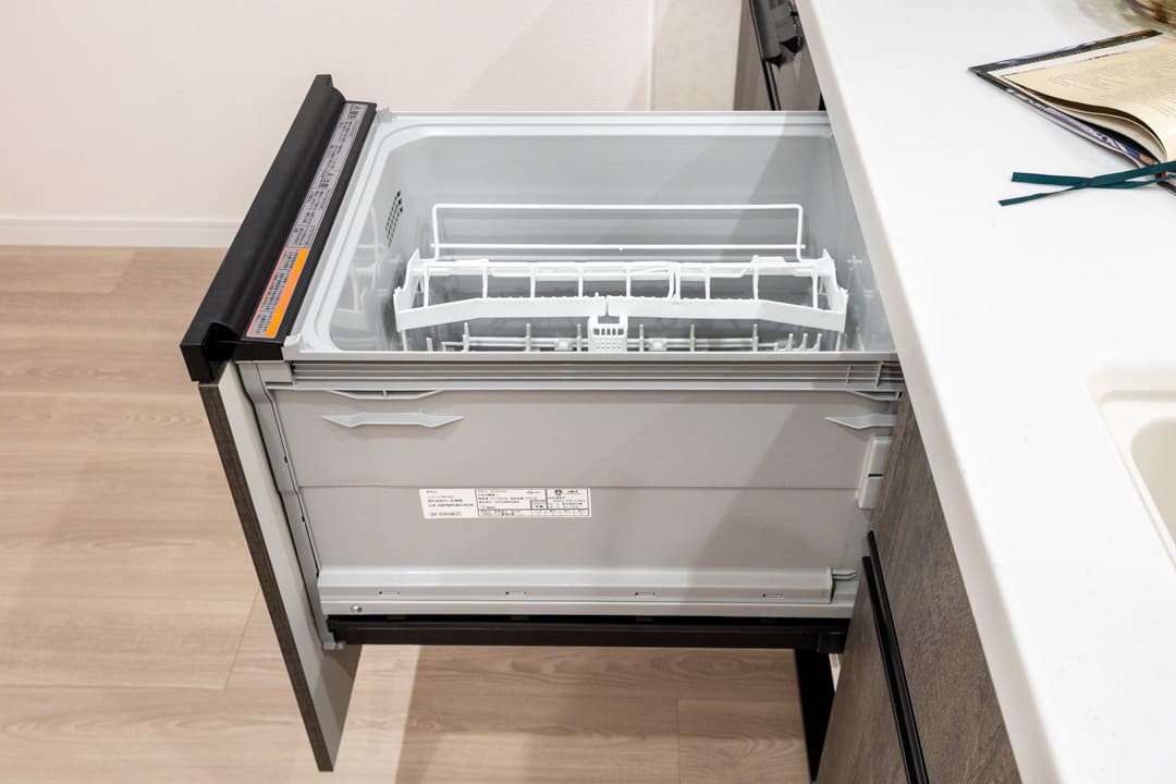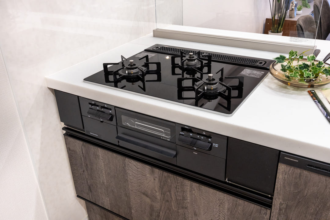 同時調理が叶うグリル付3口ガスコンロを搭載。料理の幅も広がりそうです。さらに、食洗機が内蔵されているので、後片付けが捗り、節水効果も期待できます。