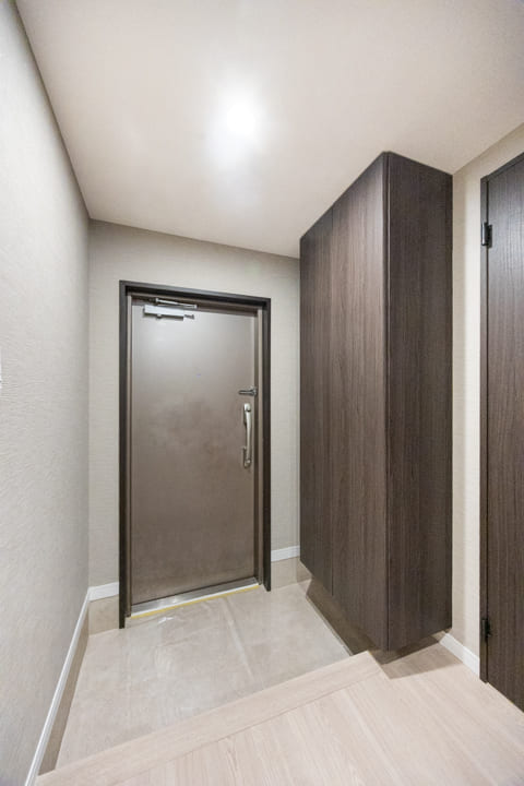 人感センサー搭載でいつも明るく出迎えてくれる玄関。荷物で両手が塞がっている時や夜遅く帰宅した時に、スイッチを探す手間がかからず助かります。トールタイプのシューズボックスを備え、散らかりがちな靴をすっきり収納できます。
