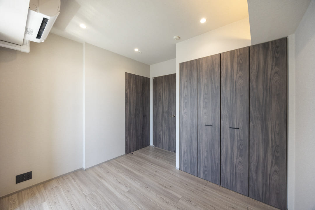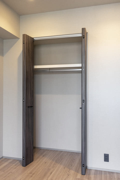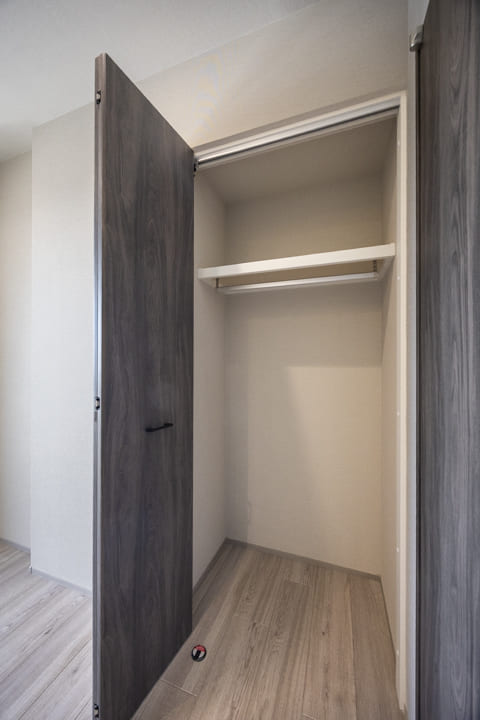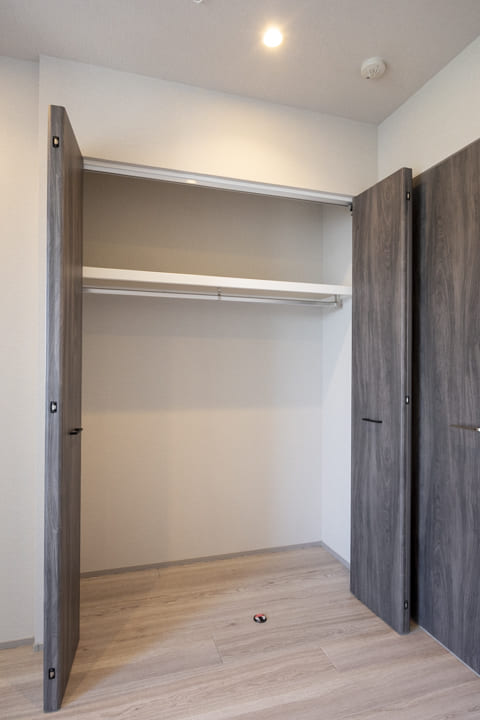 クローゼットが2ヶ所に設けられた、収納性の高さが魅力。開口部が広いので、衣類や荷物の出し入れもスムーズです。すっきり収納して居室空間をより広々と活用できます。