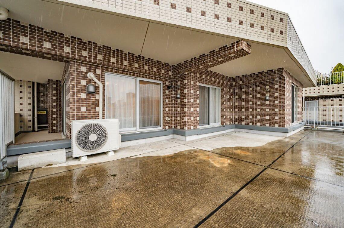 北東向きに位置する約50㎡のルーフバルコニー。ウッドフロアを敷き、観葉植物やテーブルセットを並べても余裕のある広さ。家庭菜園やヨガやストレッチ、夏には子どものプールなども楽しめそうですね。眺望も良好で開放感もたっぷりと感じられます。