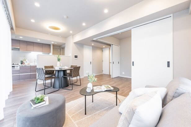 JR総武線・東京メトロ有楽町線・東西線・南北線・都営大江戸線「飯田橋」駅から徒歩10分。今回ご紹介する物件は約83㎡の4LDKです。LDKは約15帖のゆとりある広さ。洋室と繋げてより広々と過ごすことも可能です。また、約50㎡の広大なルーフバルコニーも付いていて眺望も良好。テーブルをセットして食事をしたり、本を読んだり、ストレッチをしたりと様々な過ごし方ができそうですね。