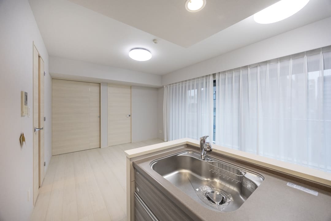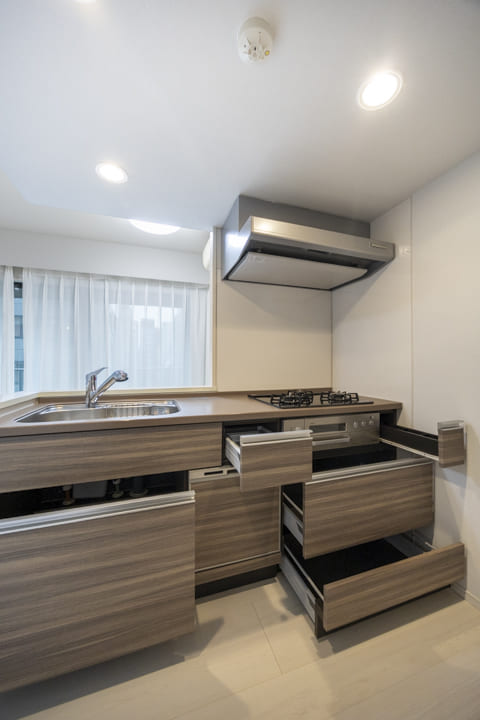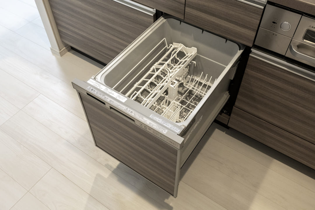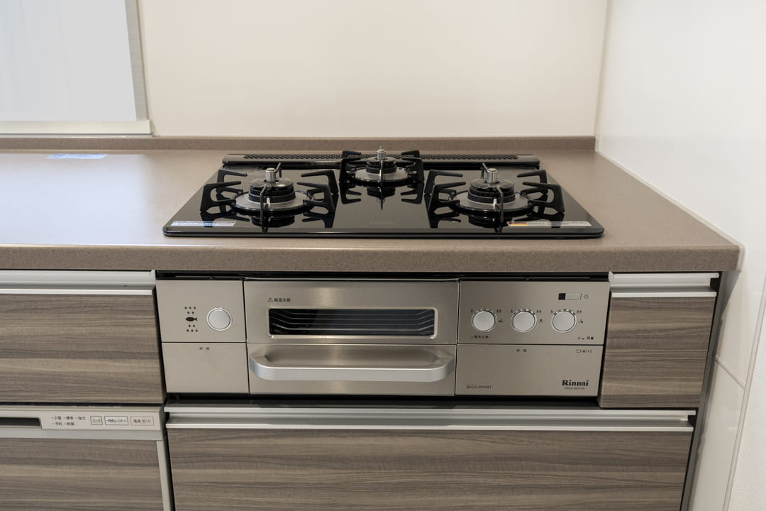 3口コンロ、グリル、食洗機付きと設備面も充実しています。シンクも広々としているので野菜などが洗いやすそうですよ。