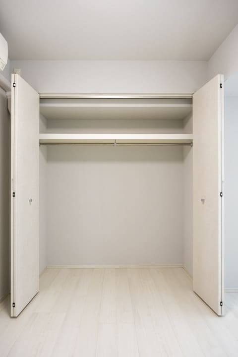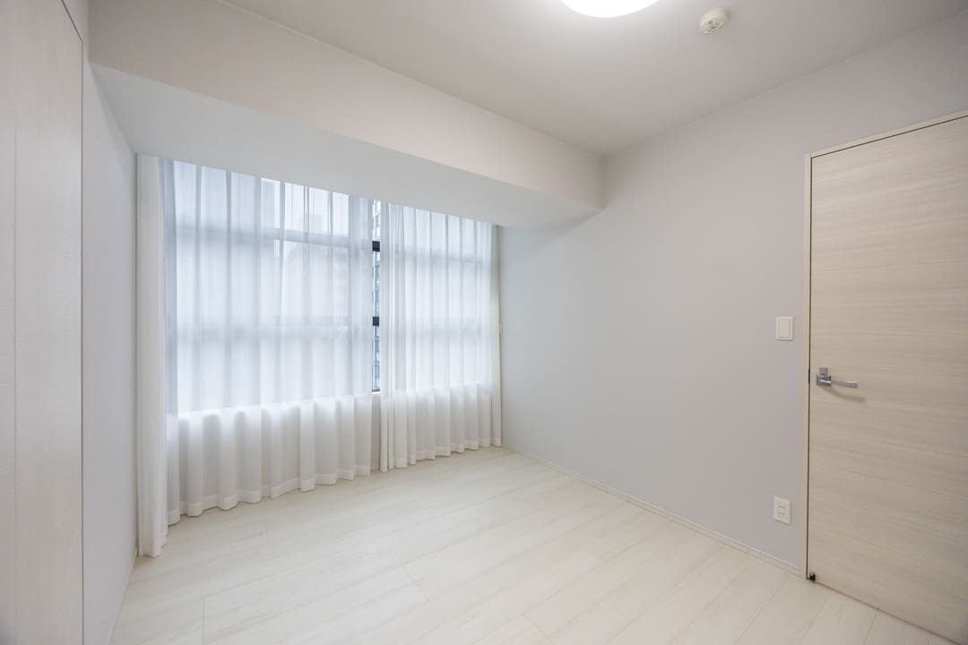 約6.4帖の洋室1は、ゆとりがあって主寝室に良さそうなお部屋です。窓が大きく、空間に広がりを感じます。また、奥行きのあるクローゼット付きで、洋服や大きめの荷物もすっきりと収納できそうです。