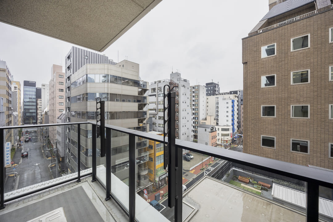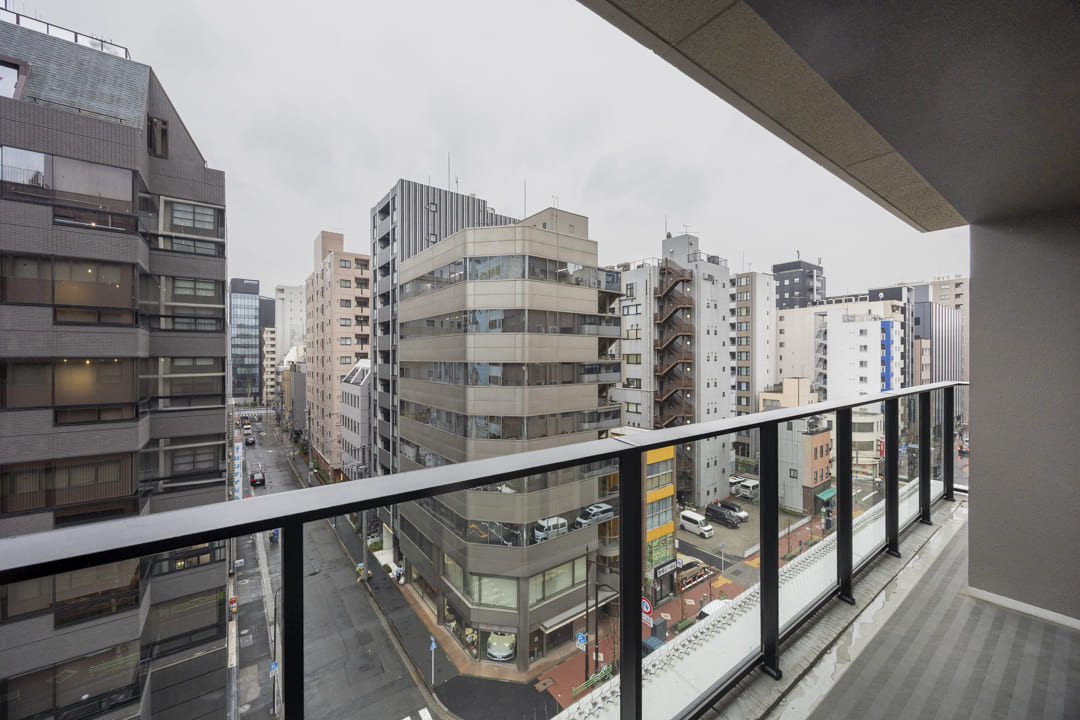 約12.56㎡のゆったりとしたバルコニーです。南西向きのため日当たり・通風が良好。空も感じる抜け感のある眺望となっています。