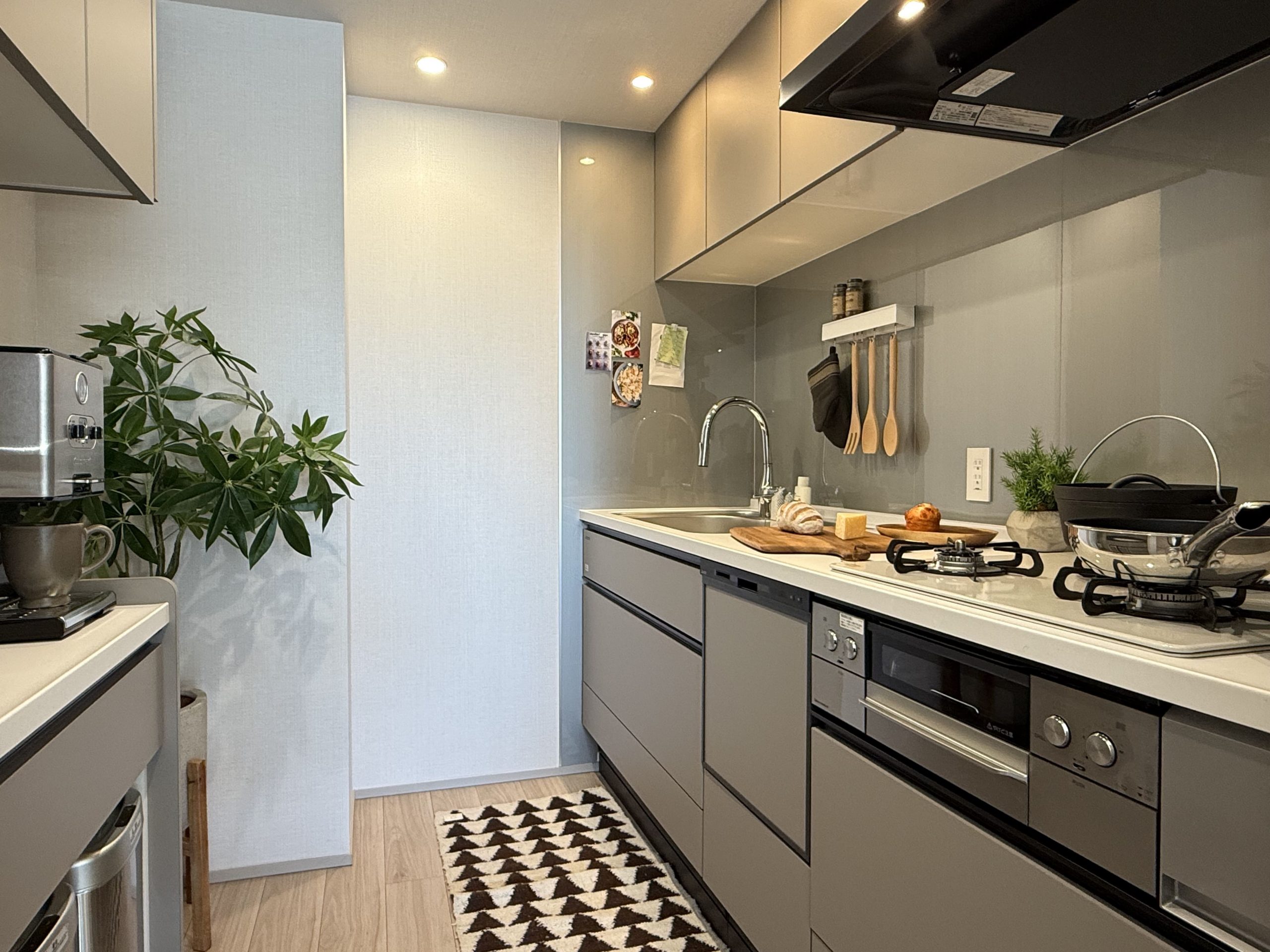 3口コンロ、グリル、ディスポーザー、浄水器、食洗機付きと設備面も充実しています。シンクも広々としているので野菜などが洗いやすそうですよ。