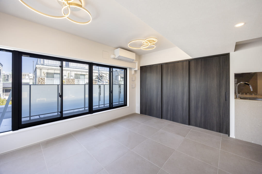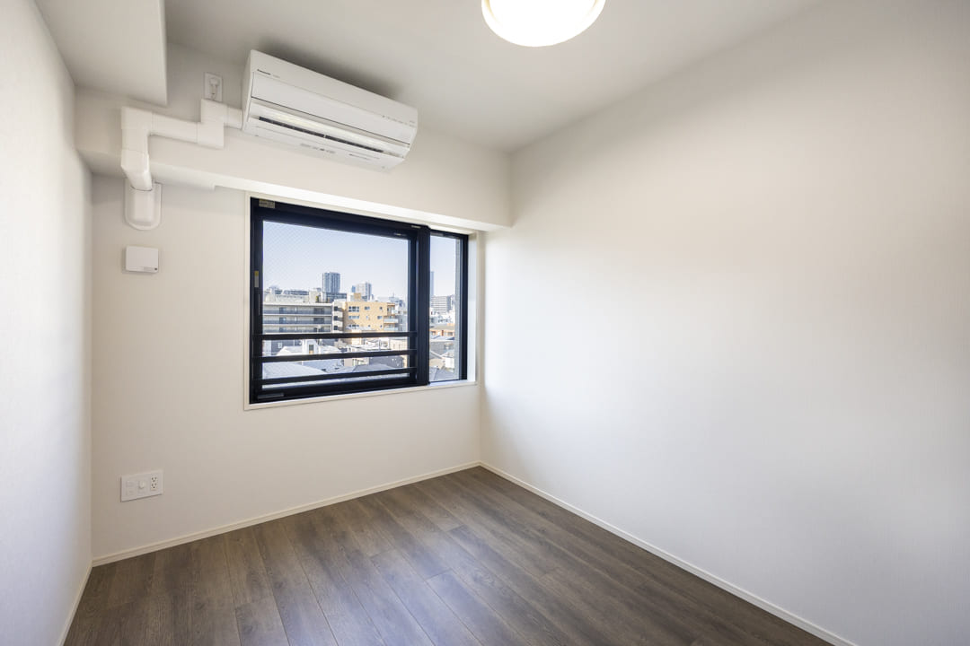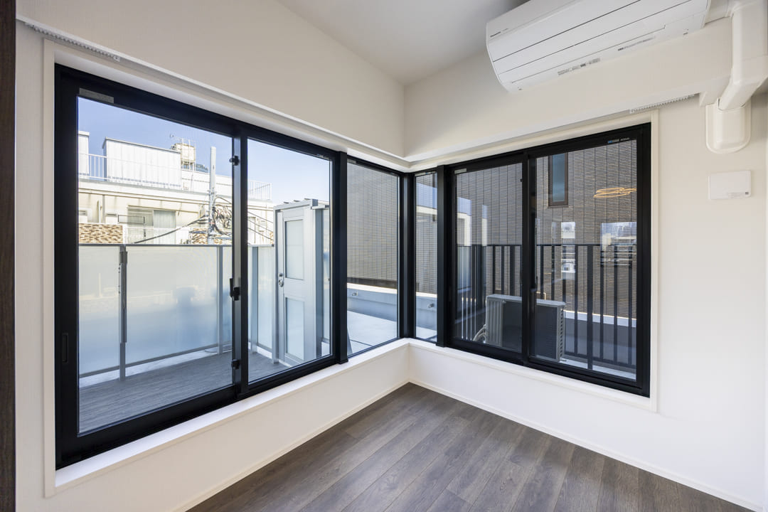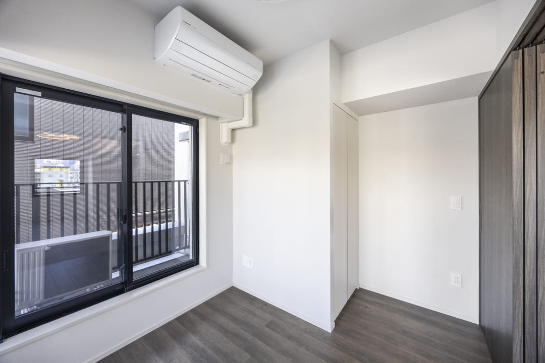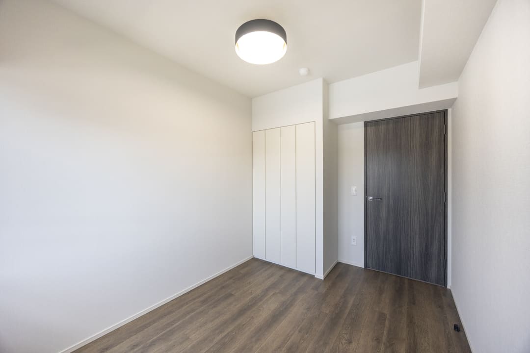 LDKに隣接する、約4.0帖の洋室3。バルコニーに面した北東二面採光で、コンパクトながら奥行きを感じられる一室です。LDKとは引き戸で仕切られているため、シーンに応じてフレキシブルに活用可能。扉を開放して拡張リビングとして使ったり、閉めてワークスペースやプライベートルームとして使ったりと、ライフスタイルに合わせて多彩に活躍してくれます。