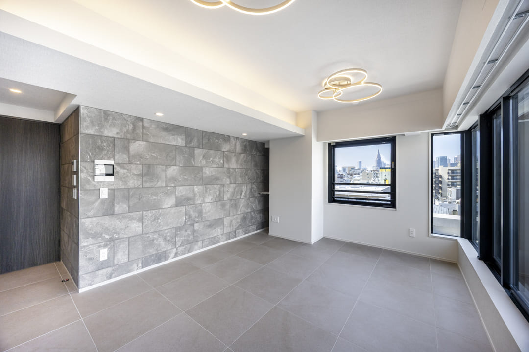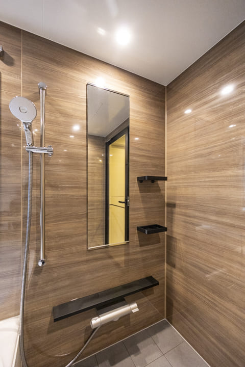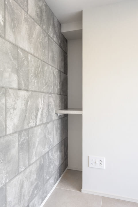 タイル仕上げのフロアや石柄のエコカラットが、洗練された雰囲気を演出。エコカラットには調湿・脱臭機能があり、湿気の気になる梅雨の時期も快適にお過ごしいただけます。さらに、間接照明のやわらかな光が空間を包み込み、心落ち着くリラックスした時間をもたらしてくれます。