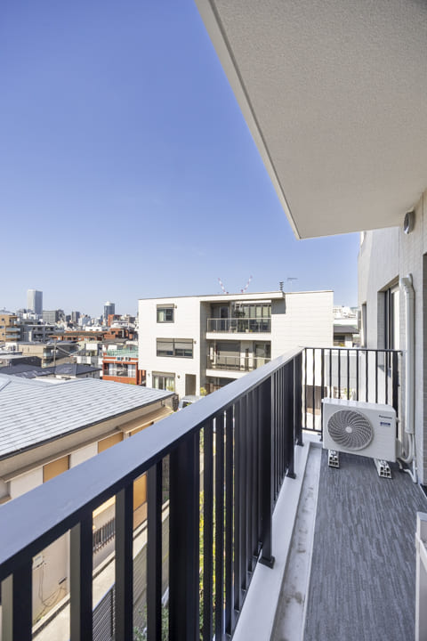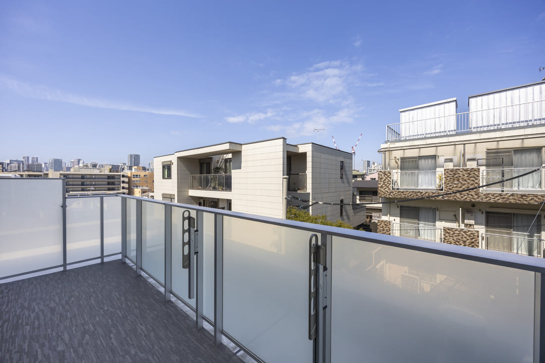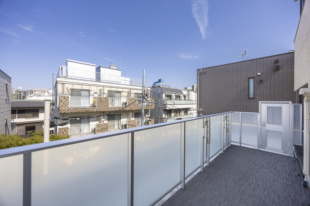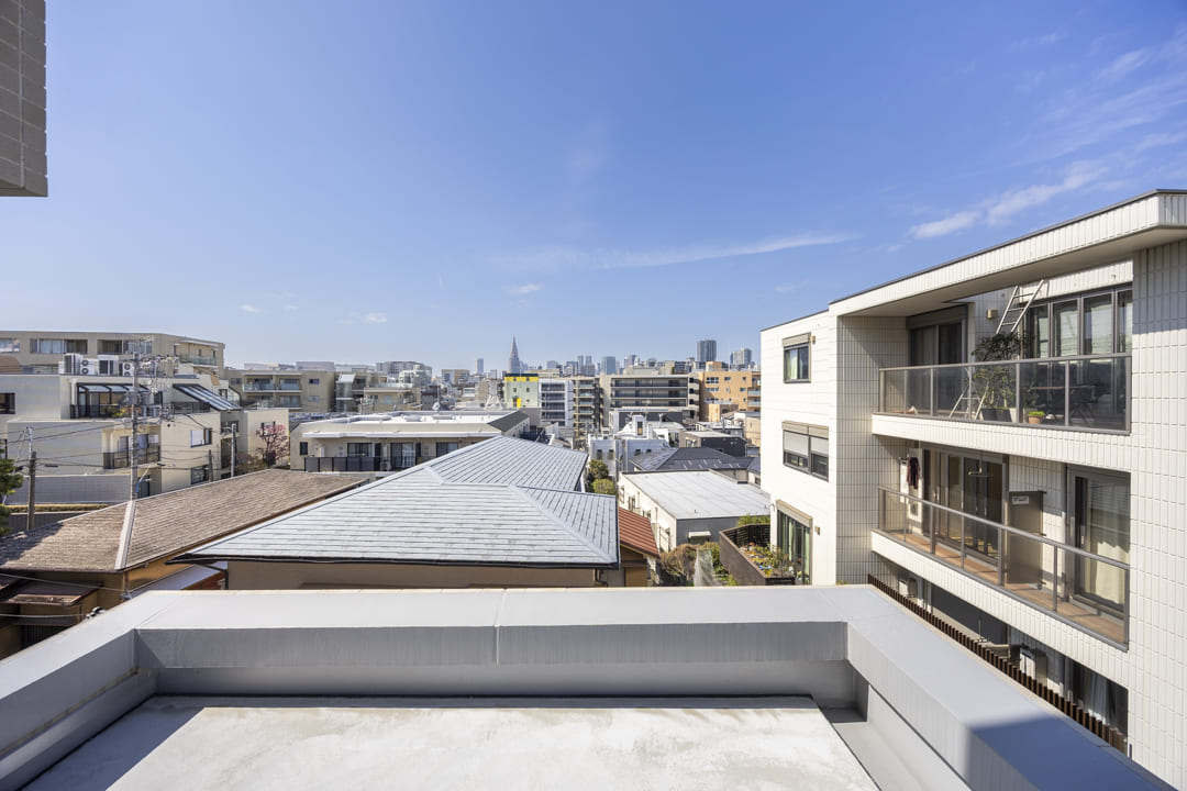 LDKに面するルーフバルコニー。8.33㎡、やわらかな光が届く北向きです。視界が抜けており、広がる青空に包まれた開放的なスペース。日向ぼっこやちょっとした運動、椅子に腰掛けてティータイムを楽しむのも◎。日常の楽しみが広がります。さらに、西側にはバルコニー、東側にはサービスバルコニーもあり、住まい全体に明るさと心地よい風を届けてくれます。