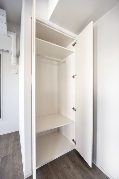 WIC(ウォークインクローゼット)完備で収納力◎。衣類はもちろん、トランクケースやゴルフバッグといった大きな荷物も収納でき、居室空間を有効活用できます。