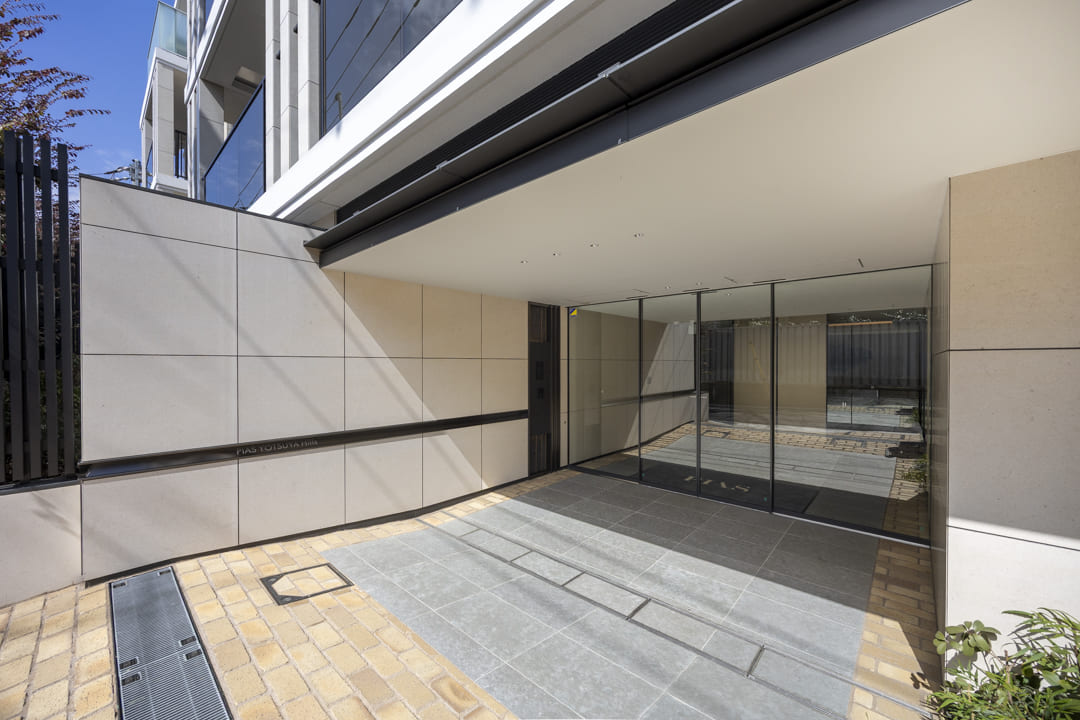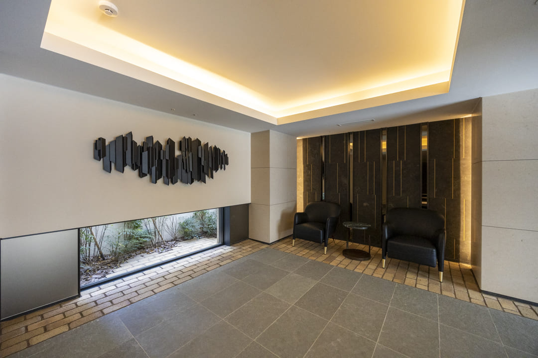 2025年(令和7年)4月に竣工した「ピアース四谷Hills」。鉄筋コンクリート造地下1階付地上5階建、総戸数25戸の築浅レジデンスです。フランス郊外の石造りの邸宅をイメージして造られた、品格ある佇まい。植栽の鮮やかな緑が彩りを添えています。エントランスは安心のオートロック体制で、不在時に重宝する宅配ボックスを完備。共用部は内廊下設計のため天候の影響を受けづらく、プライバシーを守りやすいのもポイントです。