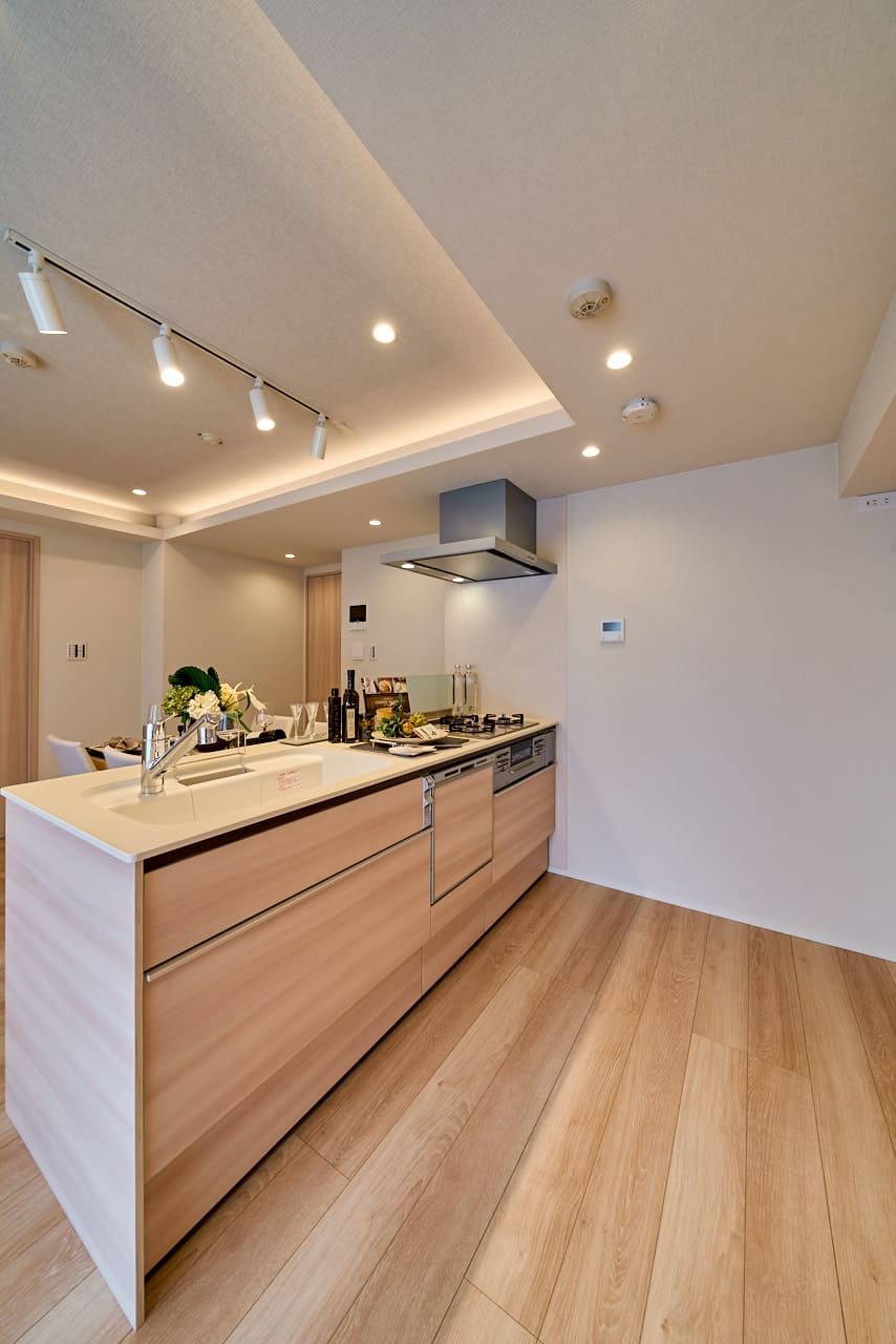 キッチンは、リビングダイニングを見渡しながら料理ができる対面式です。家族や来客とのコミュニケーションが取りやすくて◎。