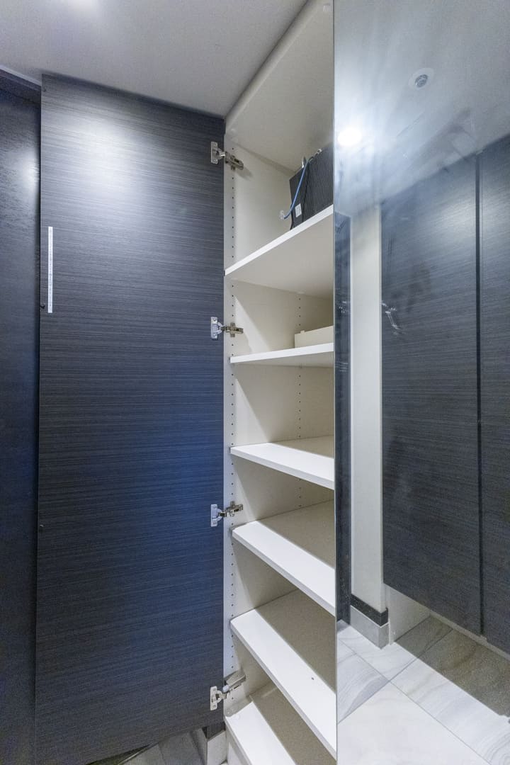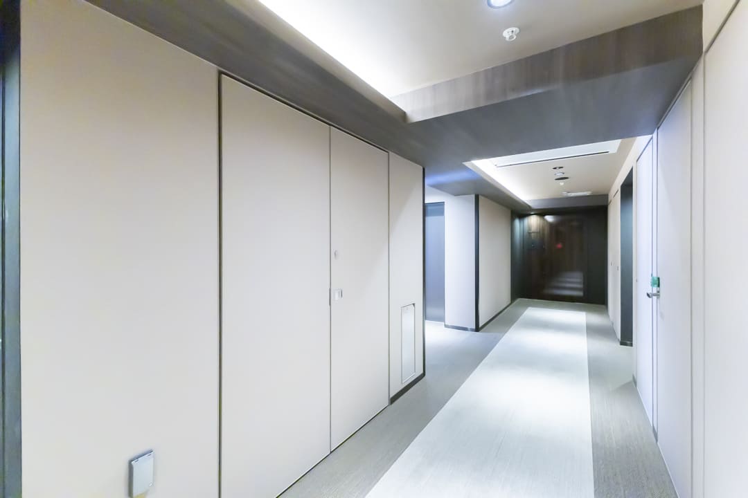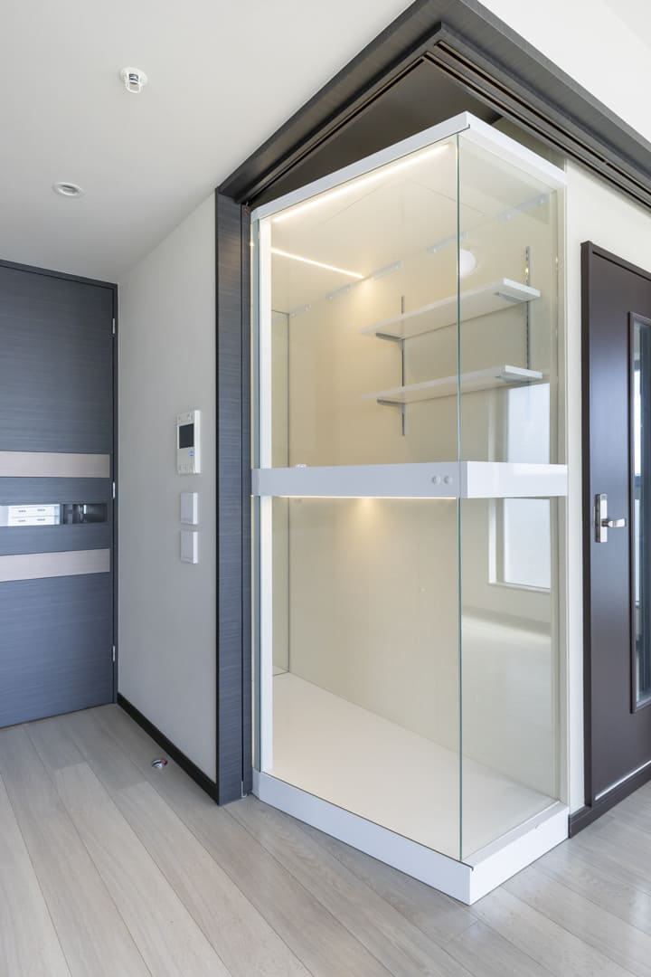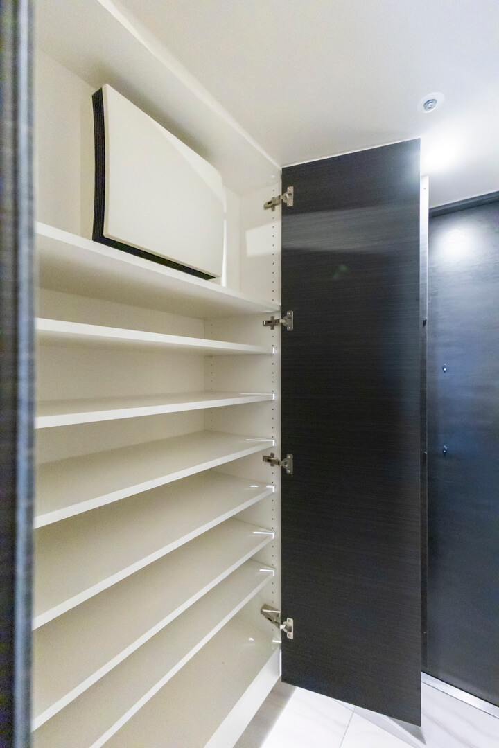 石柄のアクセントウォールを採用し、上質な雰囲気が漂う玄関です。大容量のシューズボックスと可動棚を備え、収納豊富。全身鏡が奥行きをもたらし、お出かけ前のコーディネートチェックができるのも嬉しいポイントです。照明には人感センサーが搭載されているため、荷物で両手が塞がっている時や、夜遅く帰宅した際もスイッチを探す手間がなく、スムーズに出入りできます。
