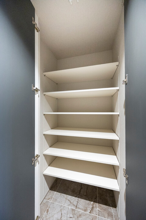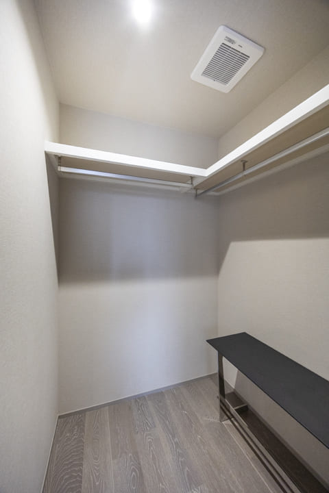 WIC(ウォークインクローゼット)を備え、収納スペースも充実。衣類はもちろん、トランクケースやゴルフバッグといった大きな荷物も収納でき、居室空間を有効活用できます。