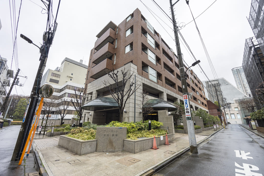 2001年(平成13年)3月に竣工した「ヴェーゼント赤坂新坂」。鉄筋コンクリート造地下1階付地上8階建、総戸数30戸の低層レジデンスです。2丁掛けタイルと御影石を使用した重厚感の漂う外観が特徴的。エントランスには車寄せを設け、ホテルライクな印象です。オートロック・防犯カメラ完備でセキュリティ面は安心。宅配ボックスも設置されているので、忙しい方でも時間を気にせずに荷物を受け取ることができます。細則はありますが、ペットの飼育も可能です。