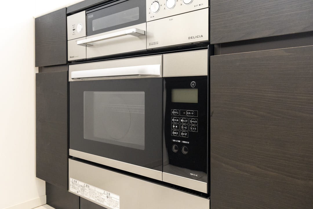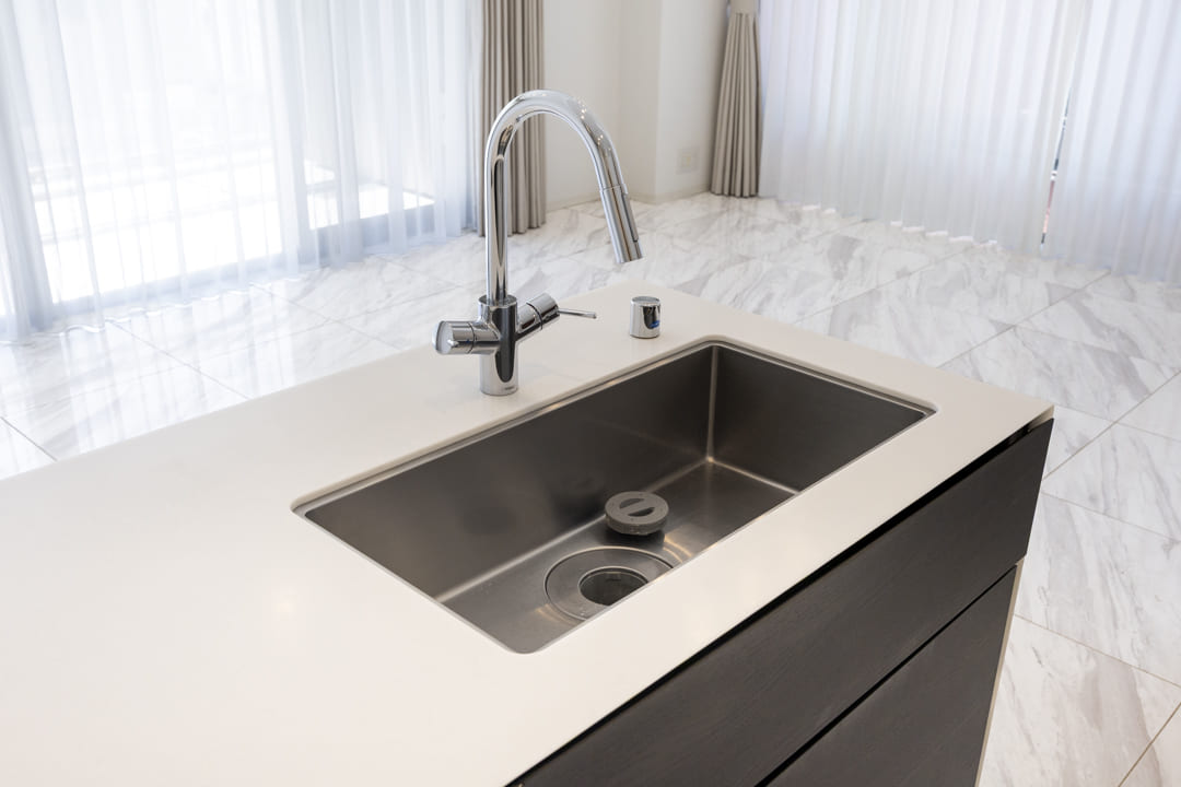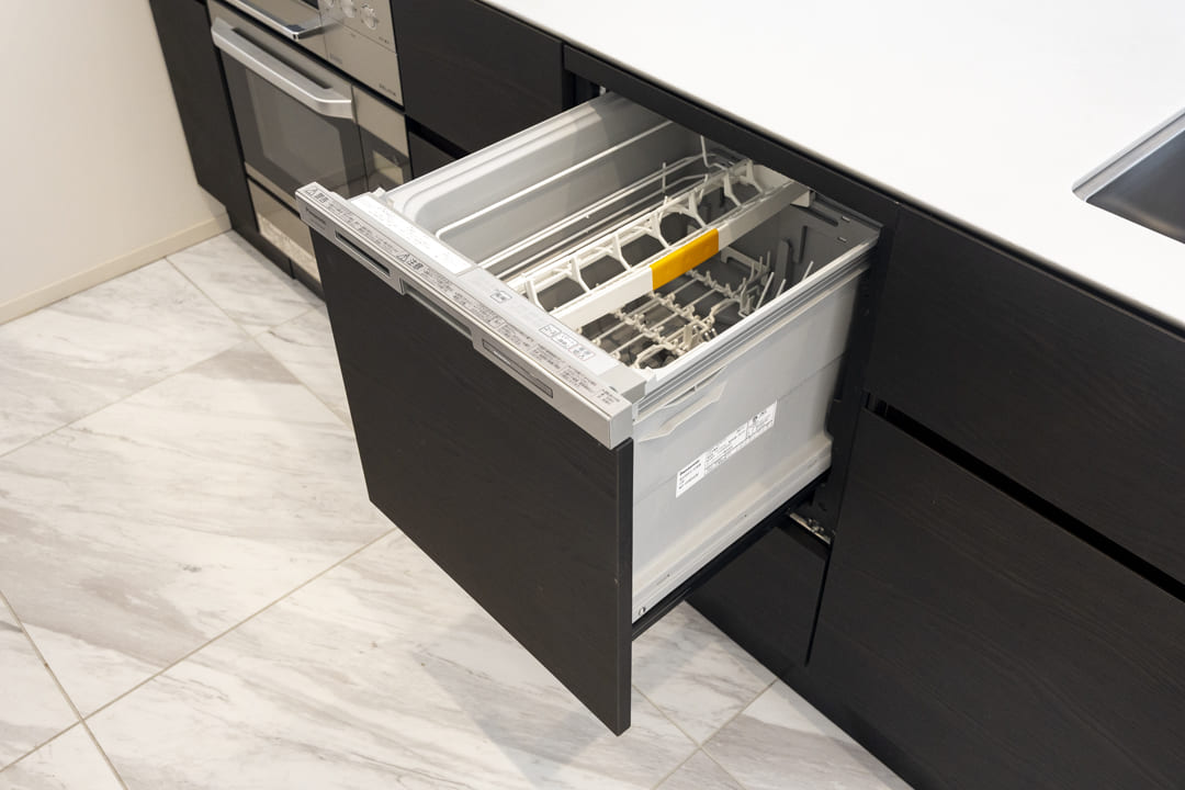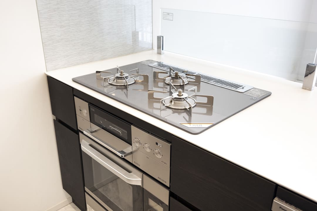 グリル付3口ガスコンロ・オーブン内蔵で同時調理が叶い、料理のレパートリーも増えそう。後片付けが捗る食洗機も内蔵されています。さらに、シンクにはディスポーザーを搭載。料理後すぐに生ゴミを処理できるので、掃除の手間が軽減され、悪臭の原因を防いでくれます。