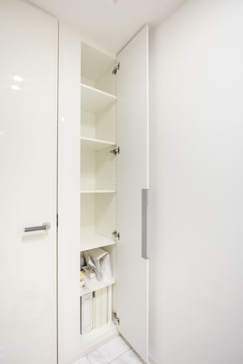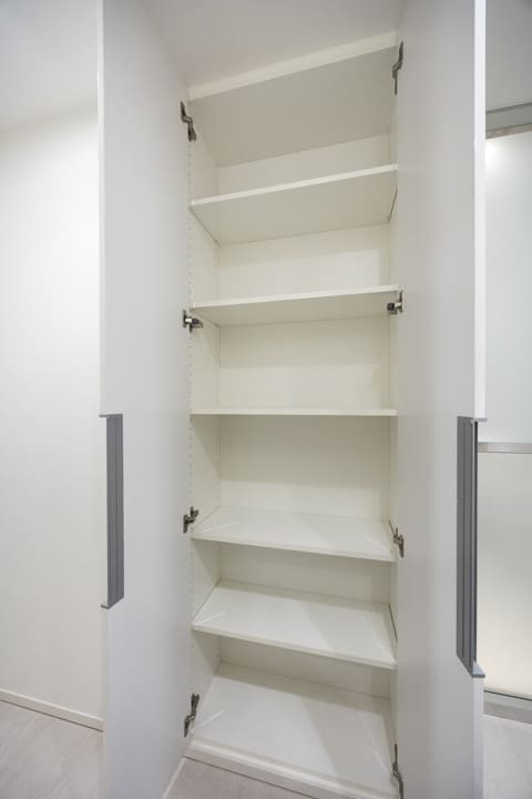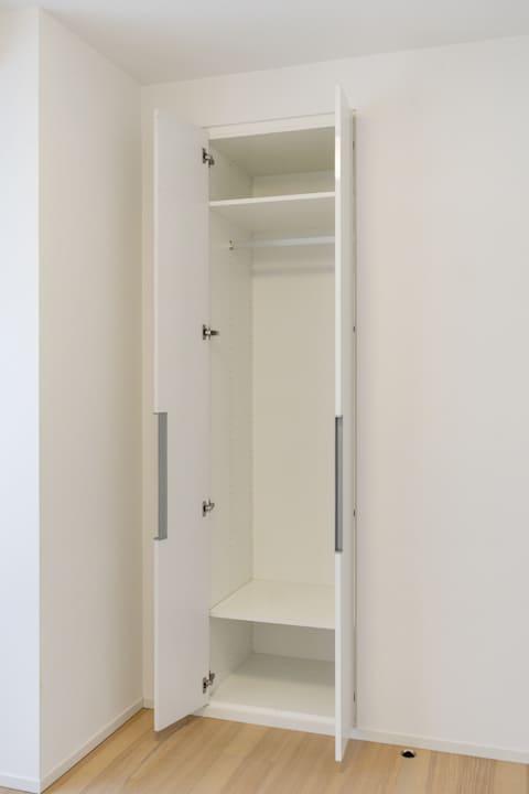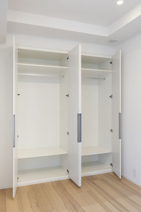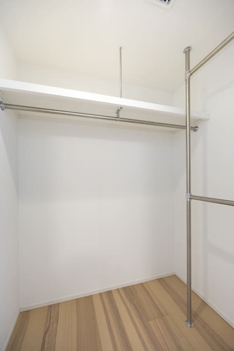 2つのクローゼットに加え、約1.3帖のWIC(ウォークインクローゼット)を設けた収納力の高さも魅力。ハンガーパイプは2段仕様となっており、丈の短い洋服も効率よく整理できます。衣類や荷物をすっきり収め、居室を広々とお使いいただけます。