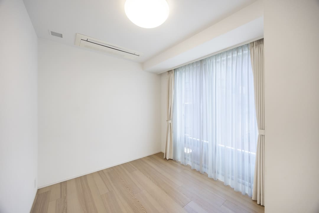 主寝室にふさわしい広さを備えた、約7.6帖の洋室1。廊下に面しており独立性が高く、落ち着きのある空間です。西側には大開口の窓を備え、午後もやわらかな光が差し込みます。足元からやさしく暖める床暖房も備わり、寒い季節も心地よくお過ごしいただけます。